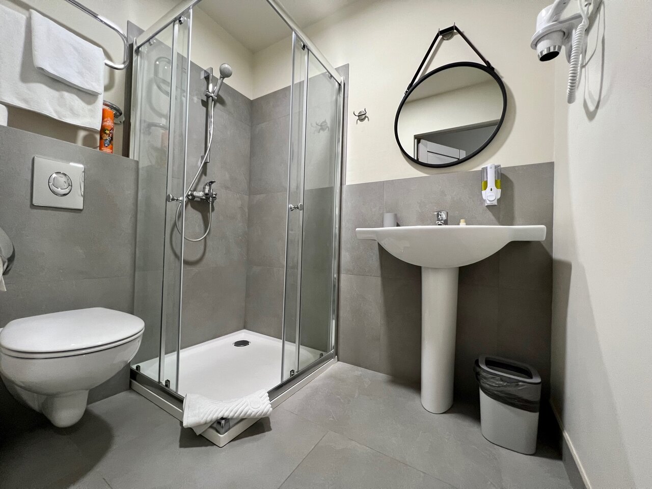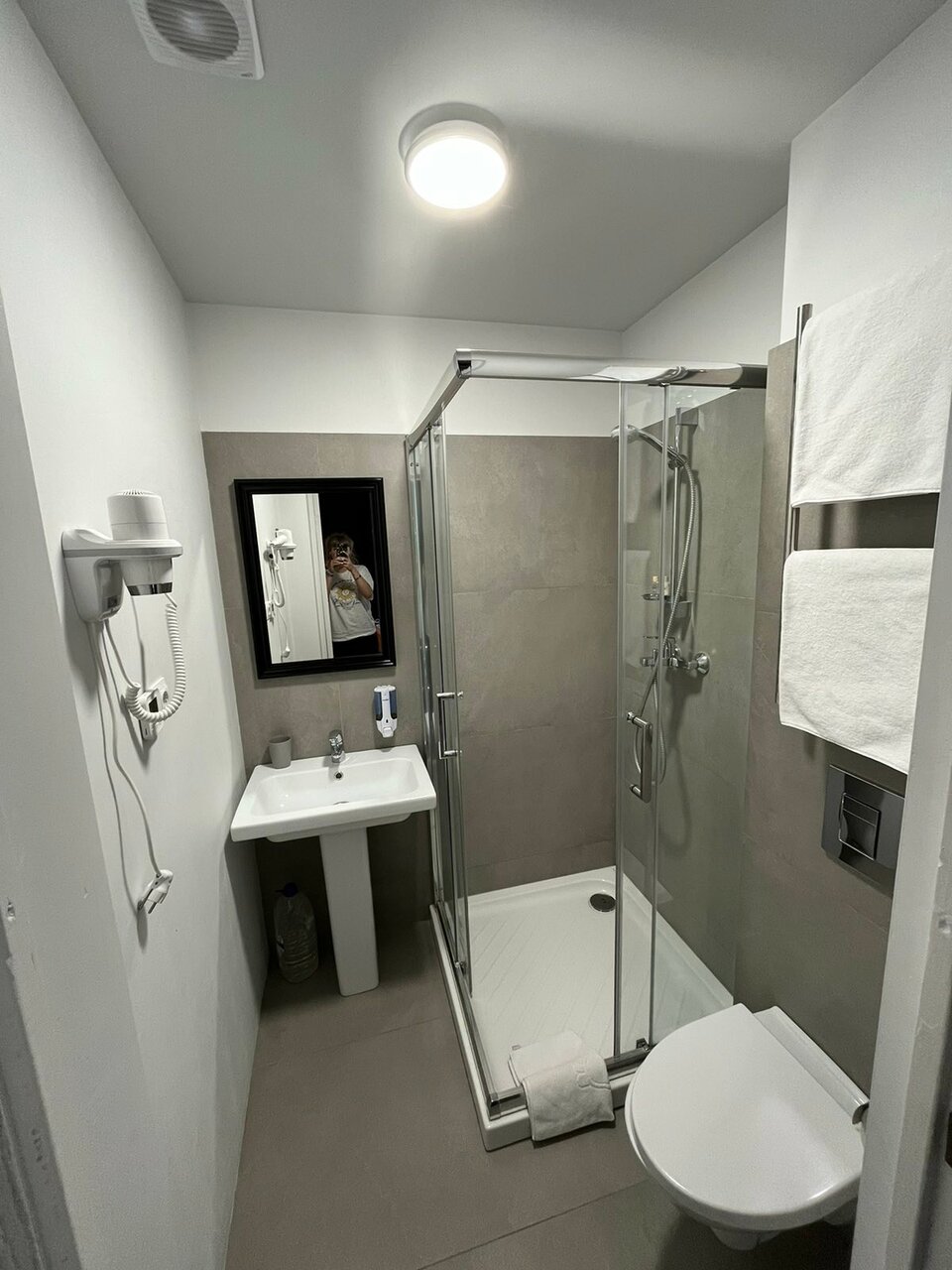 довольно просторные и по-своему уютные номера. вежливая администрация. завтрак на выбор из 3-х разных вариантов, не шведский стол, конечно, но зато очень вкусно. Снимаю звезду за сырость в ванной комнате, и видимо вследствии этого — невероятно шумный/мощный вентилятор. Включи его- невозможно спать, не включи-сырость к утру не уйдёт.