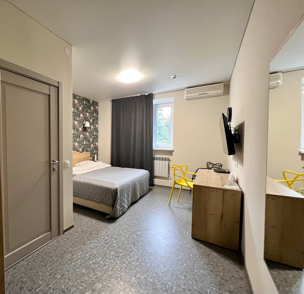 Чистый номер, отремонтированный новенький санузел, есть кондиционер, парковка для машины очень выручила, даже завтрак включен! Были проездом, буквально на ночь, все понравилось!