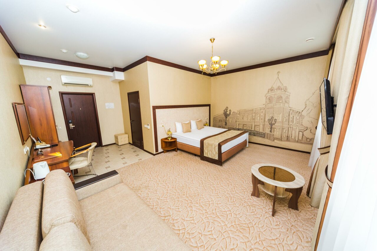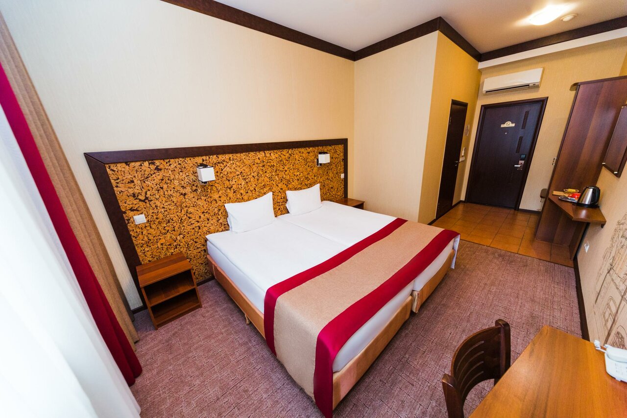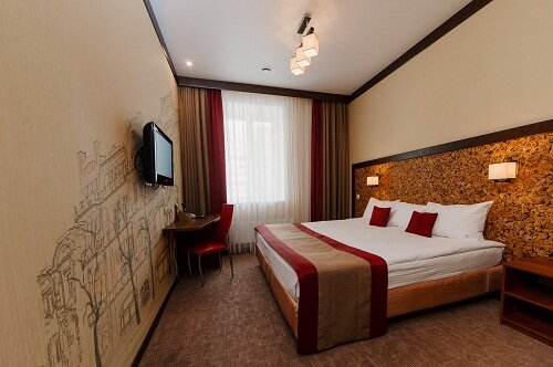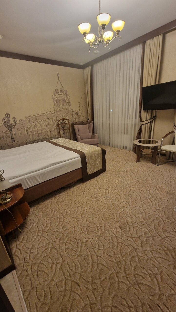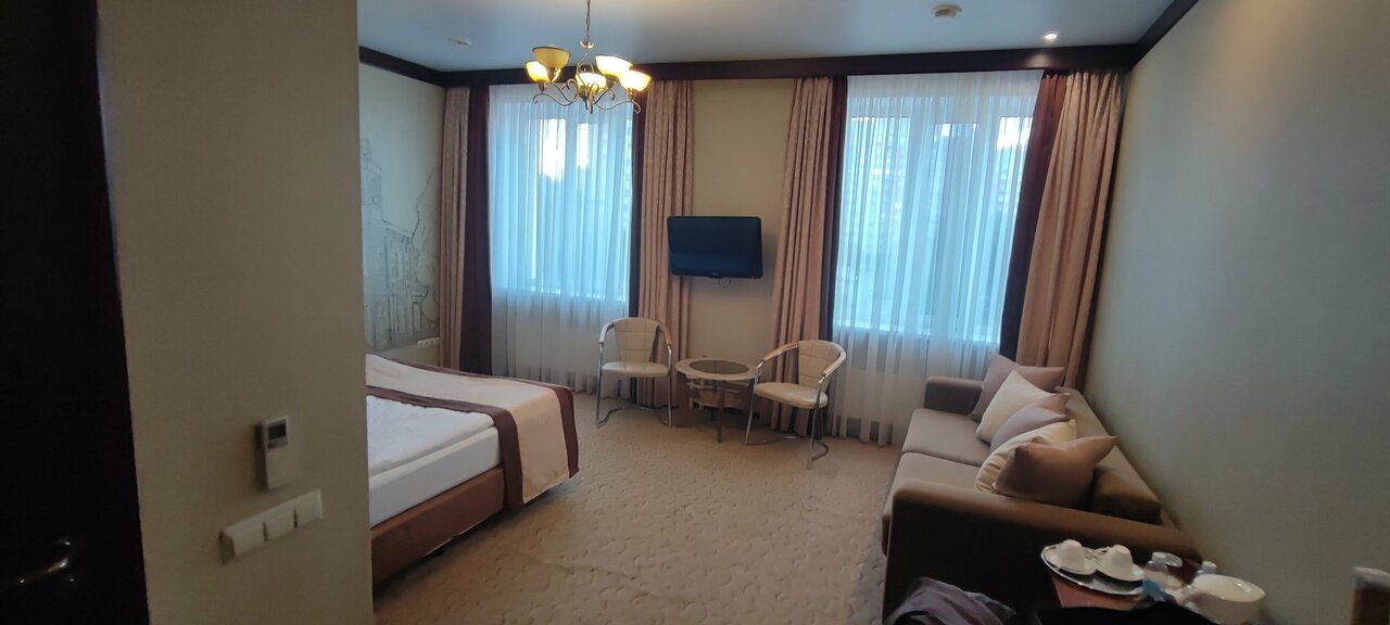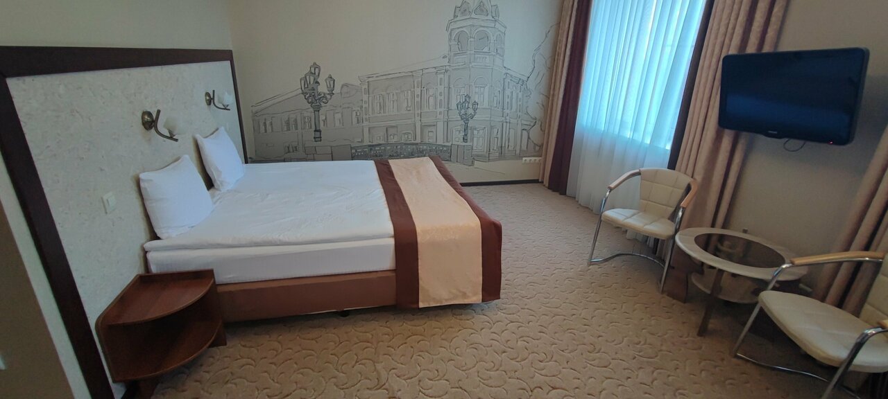 Очень классный отель❤️❤️❤️ Ехали с мужем проездом, решили остановиться на ночь, отзывы не читали, очень устали с дороги и хотели уже где-нибудь приземлиться ,выбор пал на этот отель, т.к. удобное местоположение. И мы не ошиблись!!! Персонал приветливый, номер чистый и аккуратный, все, что нужно в номере есть( душевые принадлежности, включая расческу и набор для бритья , халаты, водичка) цена качество соответствует, я бы даже сказала качество превышает!!! Единственный маленький минус, в двухместном бизнес номере с двуспальной кроватью все время разъезжаются матрасы это очень мешает, когда у вас романтик , в следующий раз возьмем категорию повыше, тем более разница в цене незначительная))) Охранник вежливый, приветливый, своя парковка под камерой огромный плюс!!! Ресторан 300 баллов из 100 Официантка София, оочень приятная и приветливая девушка!!!❤️ Блюда ресторанного качества по цене кафе ❤️ Завтрак очень вкусный! Повару спасибо, Вы профи в своем деле!!! ❤️Отель❤️
