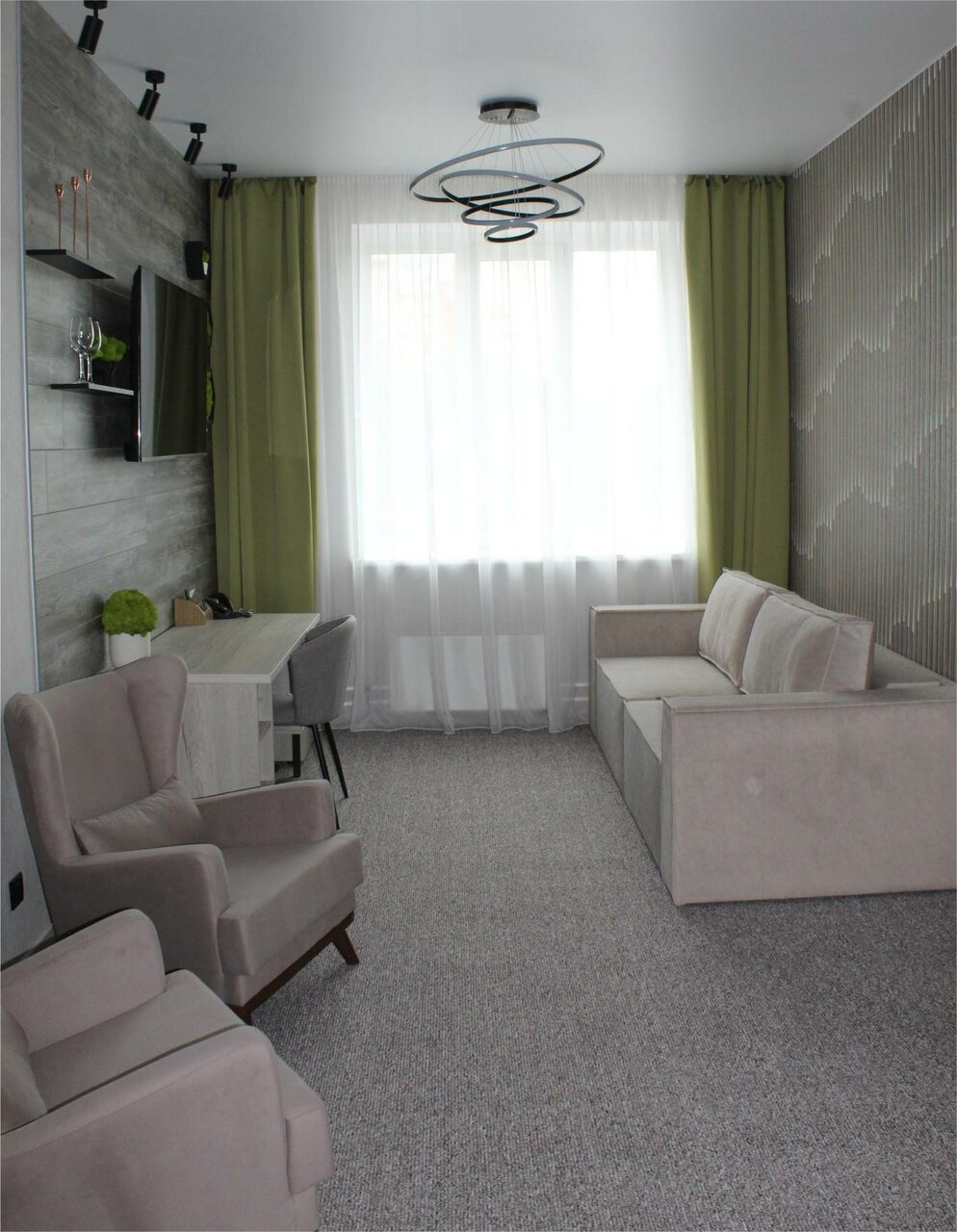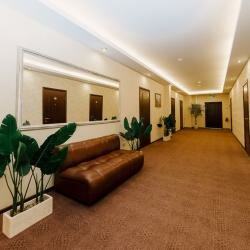Ну очень двойственное впечатление осталось. Ограниченная парковка у дороги, за забор не пустили. Охрана сказала это для бизнес центра. Лифта нет , только лестница. Гостиница на втором и выше этаже. Шум от дороги. Номер уютный, много шика. Но абсолютно безобразный санузел. Озеро на полу после душа. Полотенце и вещи положить абсолютно не куда, только на унитаз или на пол. Полуоторванный светильник у кровати. Но много пафоса.