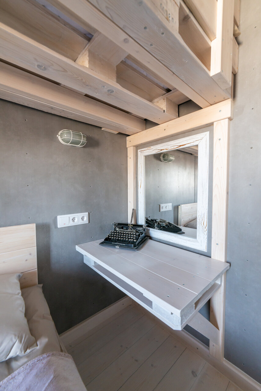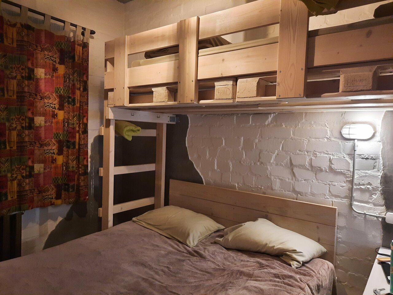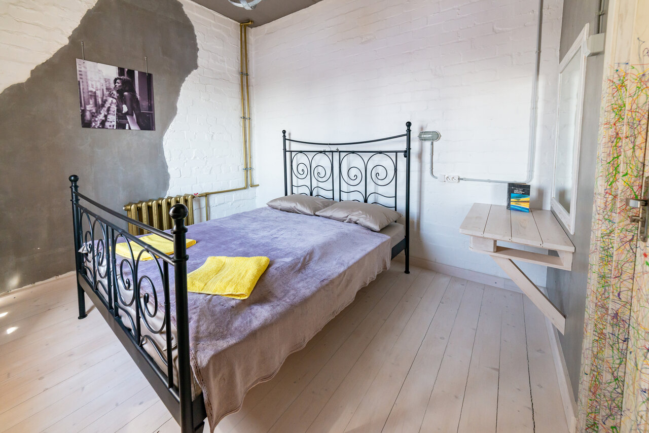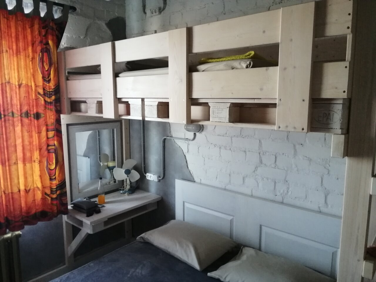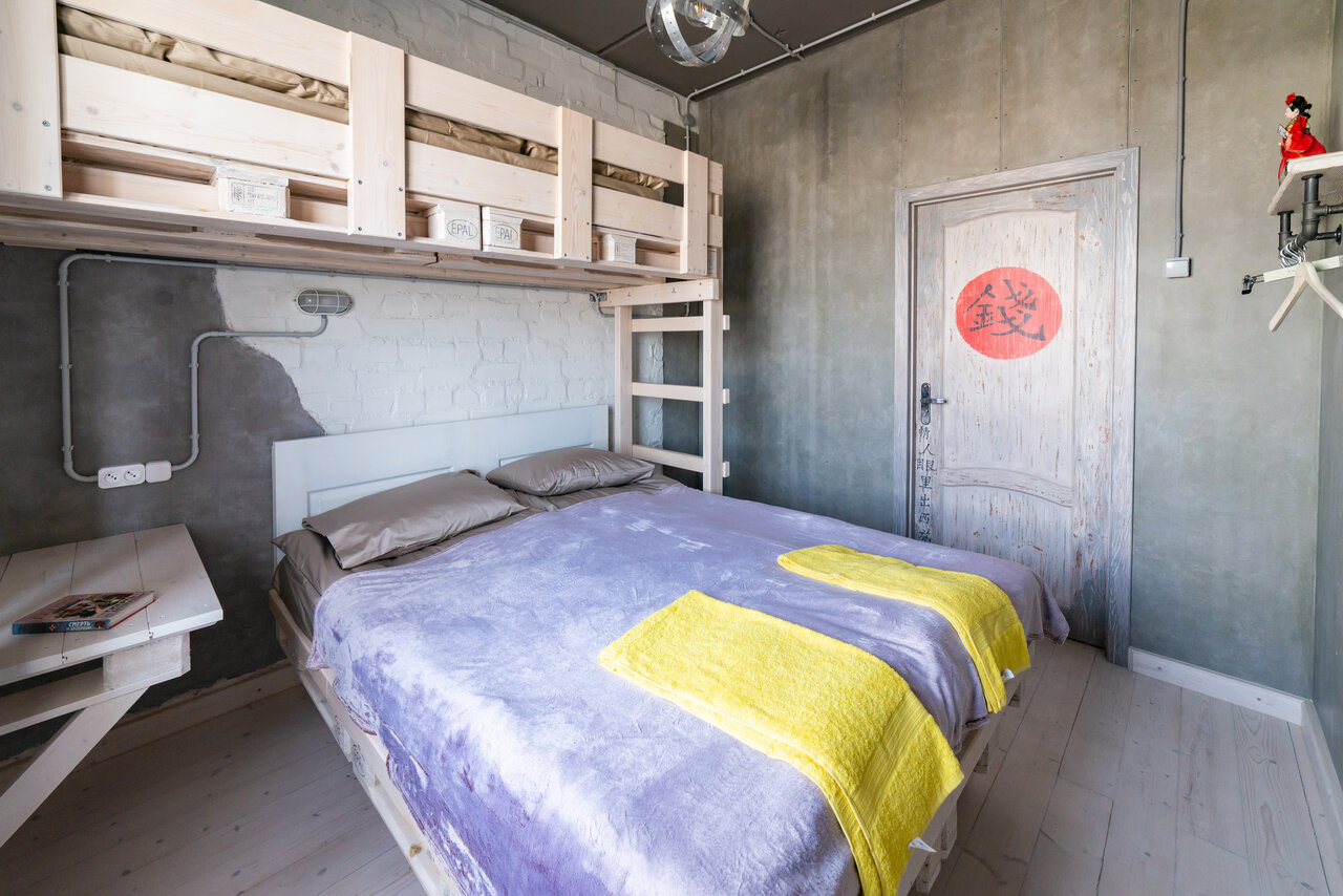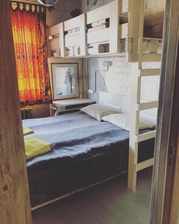 Небольшой, но очень уютный и комфортный номер, у каждой кровати есть свои розетки и светильники. Удобные матрасы и качественное белье обеспечат крепкий сон. Стильное зеркало и столик - органично вписываются в лофт-интерьер.