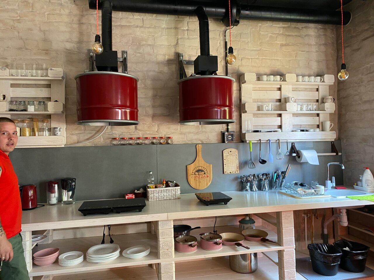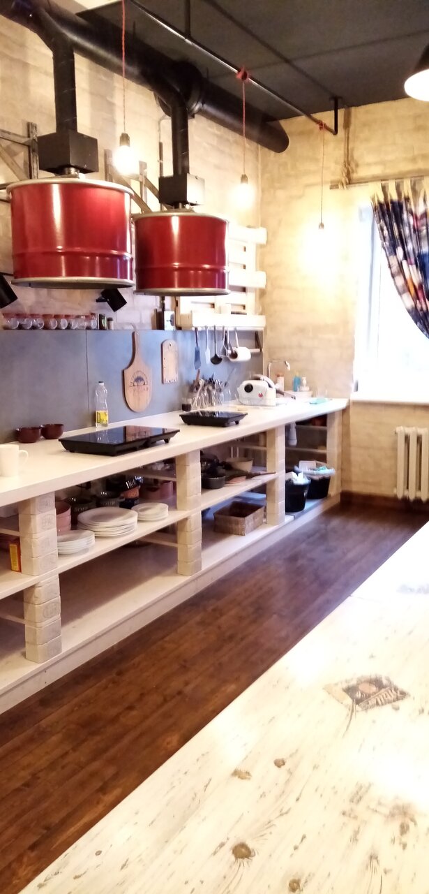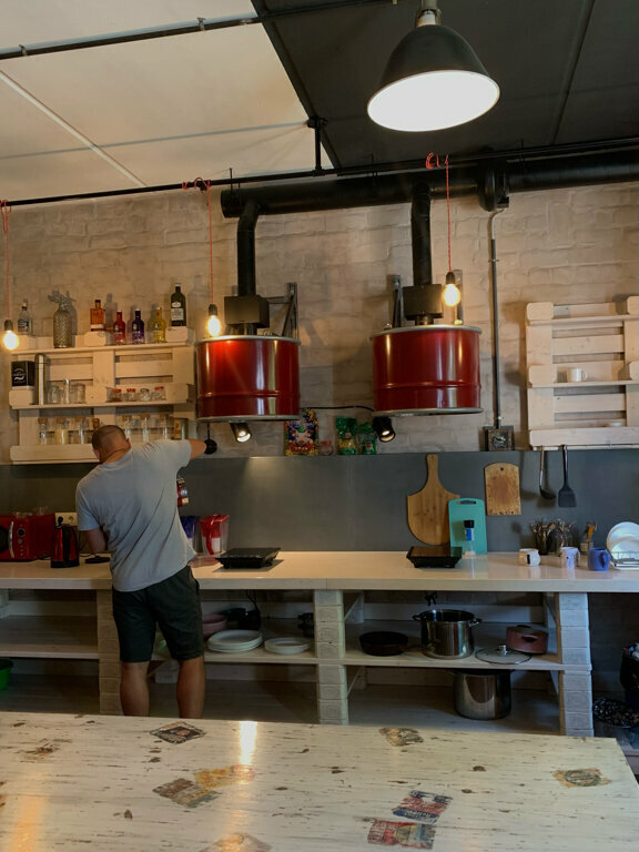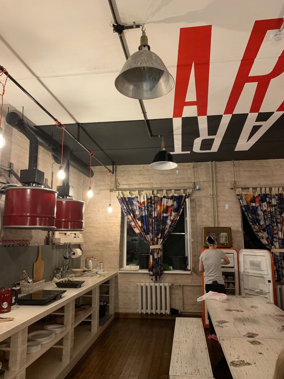 Прикольный хостел. Дизайн везде. Кухня большая, просторная, удобная и ретро холодильник радует глаз. Есть комната отдыха с настолками и теннисном. Сервис на шикарном уровне. Приятное впечатление и времяпрепровождение.