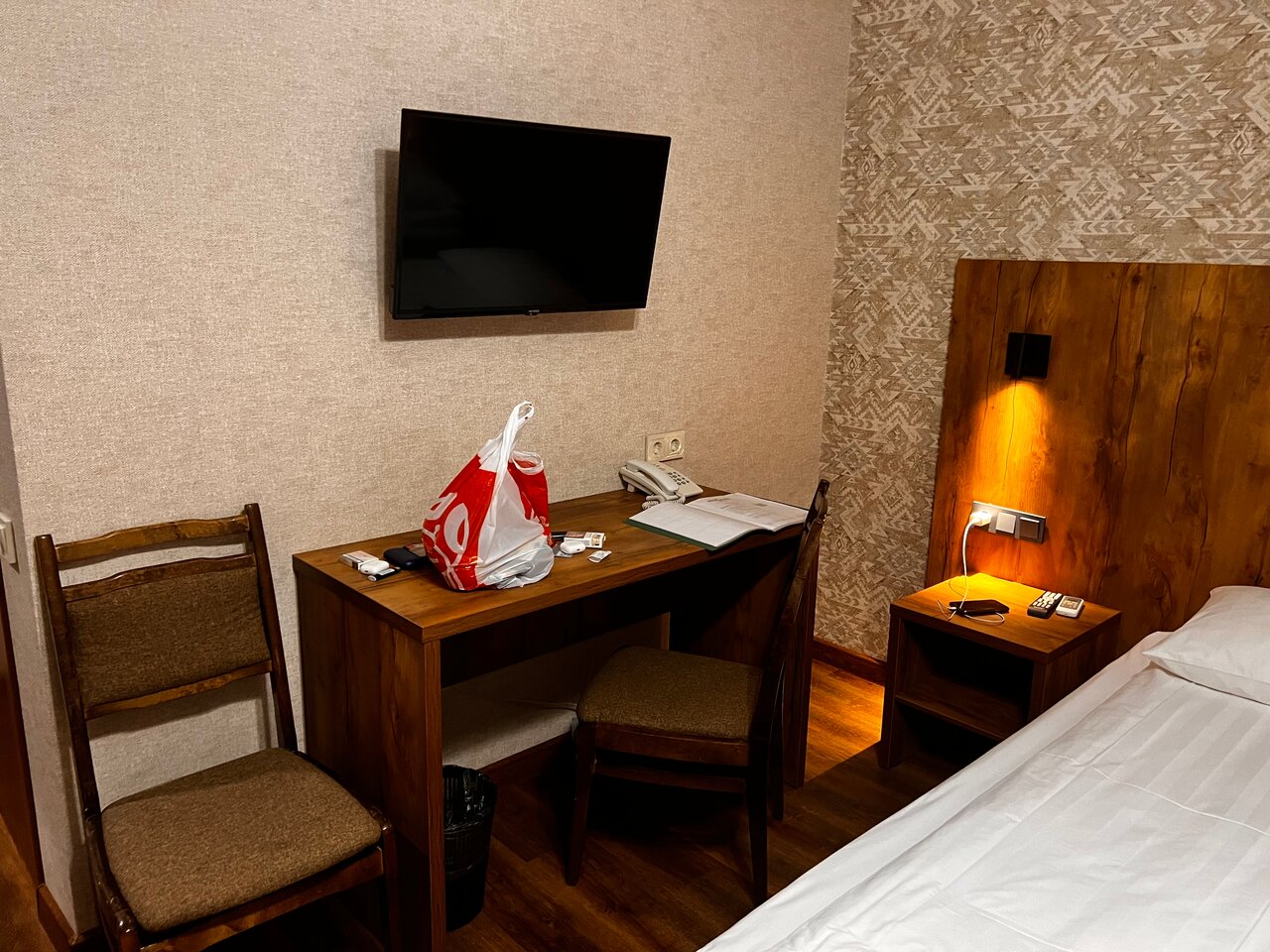 Для такой цены супер отель. Одноместный номер обошёлся 2300. Кровать хорошая и удобная, сантехника в номере качественная новая, напор воды отличный, а что ещё нужно в отеле? Завтрак хороший, все свежеприготовленное. Единственное отель находиться на отшибе и некуда сходить. Рядом есть кафе самовывоз с вкусной едой, суши в нем нормальные.