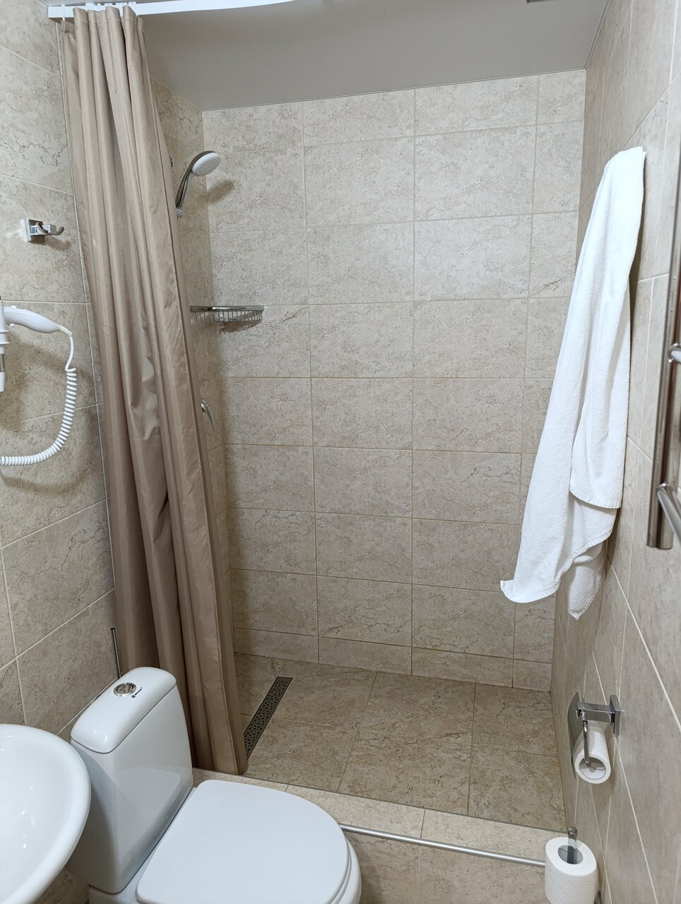 За такую цену , хороший отель , но не более. Было позднее заселение, нас приняли , спасибо. В номере было тихо , до тех пор пока у соседей не проснулся ребенок и не начал орать ) Жили на третьем этаже , вода есть, но напор слабоват и очень плохо уходит вода в душе. Тапочки, полотенца 3 вида, шампунь и гель для душа. На завтрак шведский стол — омлет, варенные яйца , сосиски, каша молочная , рис , гречка, пельмени. Хлеба не было. Один вид сыра и колбасы , а хлеба не было ♀️ молоко, вода, чай в пакетиках , творожник, шарлотка. Консервация в виде горошка и кукурузы выглядела не очень, перчики и ананас. Кофемашина стояла , но толи не работала толи нужно было кому-то заплатить, не понятно. На завтрак нас никто не встретил, не спросил номер комнаты, так что спрашивать у кого-то про кофе не стали. Парковка есть за шлагбаумом , нам место хватило.