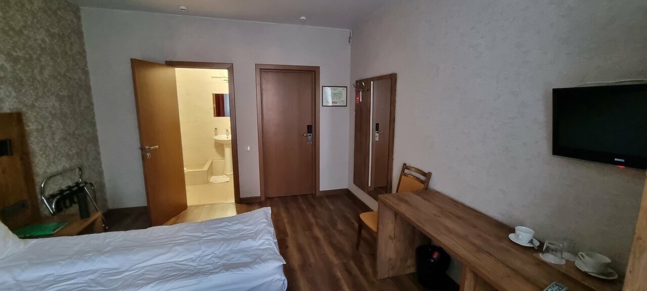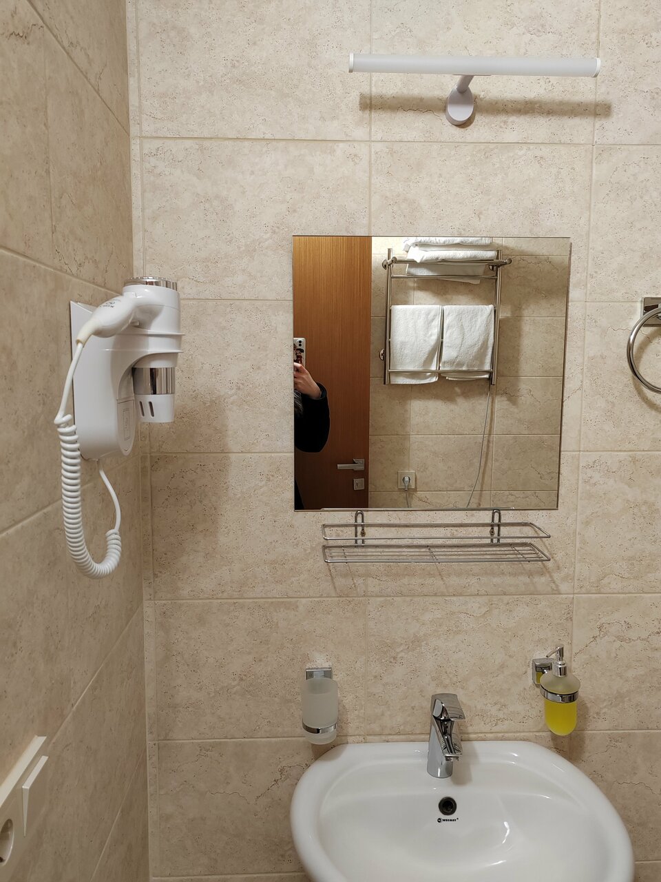 Хороший номер, но маленький и невозможно разложить чемодан это главный его минус. Фен и косметика в ванной была. Окна выходили во двор, но близость железной дороги все равно заставила закрыть окно наглухо, хотя я люблю спать с открытым. Главное достоинство наличия прямо рядом продуктового магазина и чуть далее в 20 минутах ходьбы достаточно крупного торгового центра Арена с фудкортом и необходимыми магазинами и аптекой. Завтрак как то не запомнился, но было все хорошо.