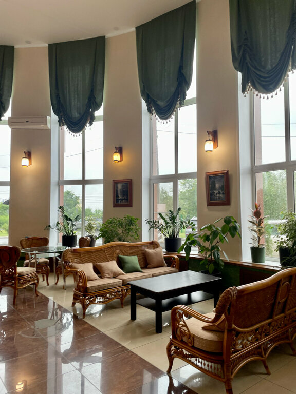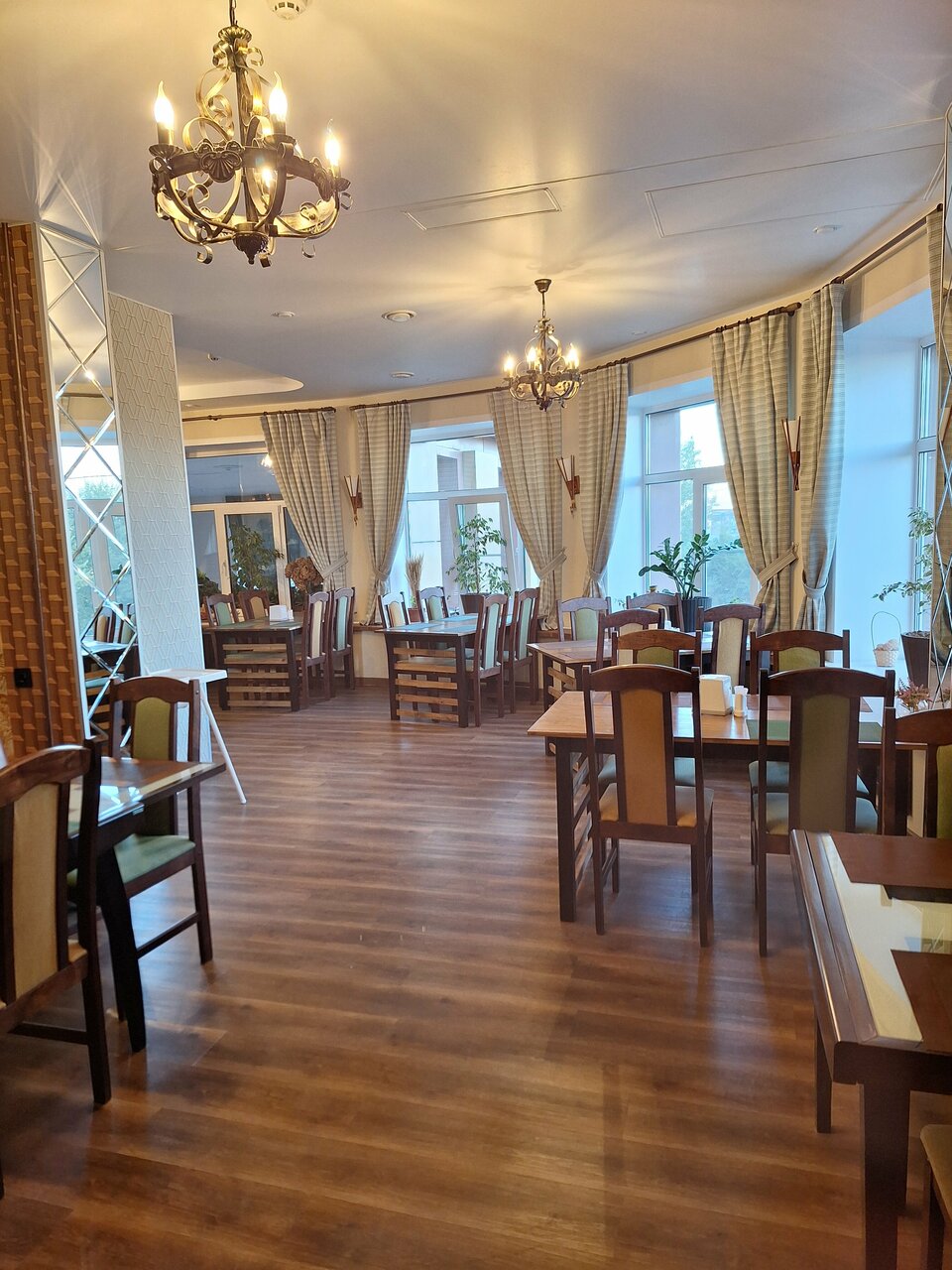 Останавливались, только на ночь. Приехали часов в 19 :00. Завтрак был включён. Бронировали через яндекс. Муж, я и собака. Было отмечено, что нужна двуспальная кровать. По итого было 2 односпальных. У нас был ранний выезд, в 6 утра. Попросили собрать завтрак с собой. Нам отказали, так надо было это уточнять при брони, но этого нигде не было написано. В итоге без завтрака. За завтрак вернуть не могут, так как через яндекс было. За собаку взяли 600 р ночь. Хотели поужинать, но и тут у них нельзя было поесть. Отправили нас в ресторан Шашлычный дворец. Пошли туда заказали с собой. Один плюс, внизу у ресепшена, красивое место отдыха. А и ещё, что можно с собакой.