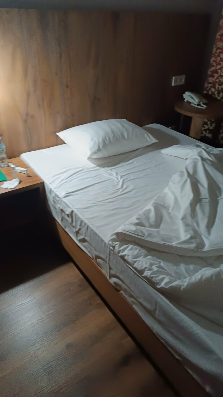 Отель достаточно новый, без излишеств. Мебель свежая, в номере чисто, шуршащее белое постельное и полотенца. Подушки удобные, но вот матрасы абсолютный кол, если спали когда-либо на доске, то ощущения вспомните точно. Это был единственный свободный вариант в ночи с моря. Завтрак шведский стол, не особо богат (шарлотка, сырники, чай, кофе, каша рисовая, сыр, колбаса, яйца варёные холодные, сосиски и омлет), но по завтракать можно.