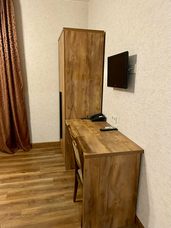 Номер небольшой, но чистый уютный, сантехника работает, напор воды хороший, есть набор полотенец, парковка большая, места есть. Завтрак весьма неплохой. Из минусов — в номере сильный запах новой мебели, но проветрить было нельзя, потому что батареи были холодные ( в середине октября), пол холодный, немного грели кондиционером, не приятного мало. Ужасно скрипучий матрас ко всему прочему. Были с ребёнком, поэтому такие мелочи важны.
