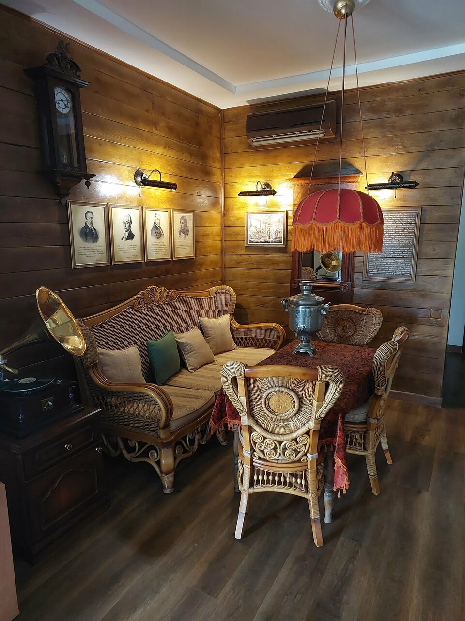 Чистые номера, вежливый персонал, спокойная и тихая атмосфера — хорошая звукоизоляция, соседей не слышно. Понравилась отдельно музейная экспозиция. Сочетание старины и современного стиля смотрится лаконично.
