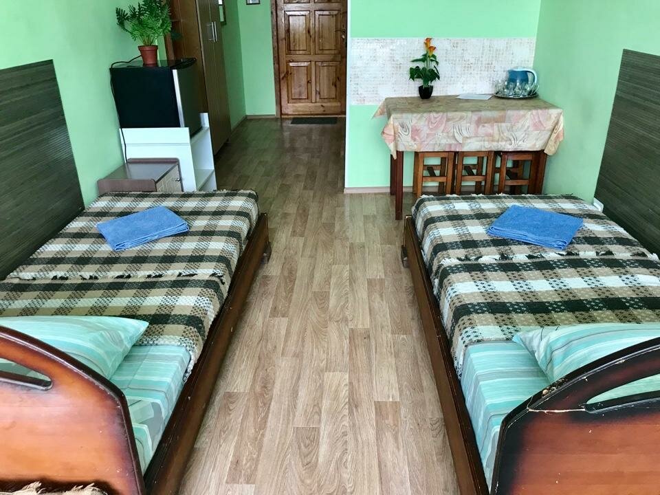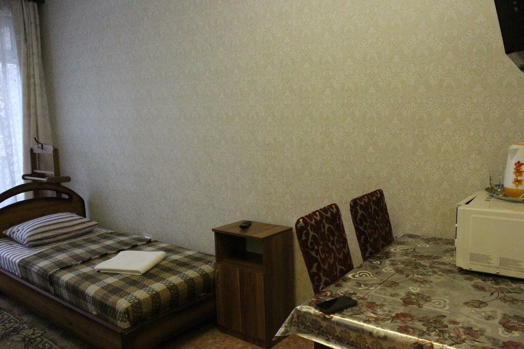 Душ, туалет в номере. Скромненько,но чисто и аккуратно. Есть чайник, вентилятор. В августе 2022 заплатили за 4 человек 3200. Администратор очень приветливая!) Для ночлега рекомендую тут остановиться.