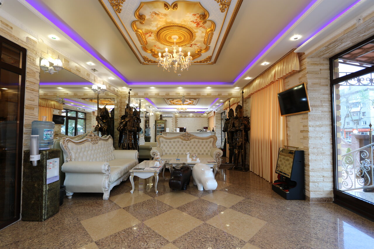 Гостиница очень красивая,фасад с рыцарями и внутри очень хорошо.номер люкс шикарный и комфортный завтрак включен