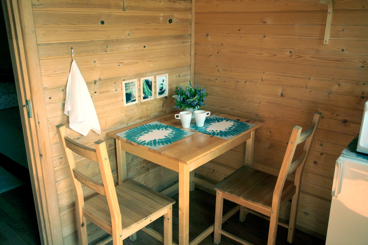 - Добротные номера с микроволновкой, чайником, столом, стульями.