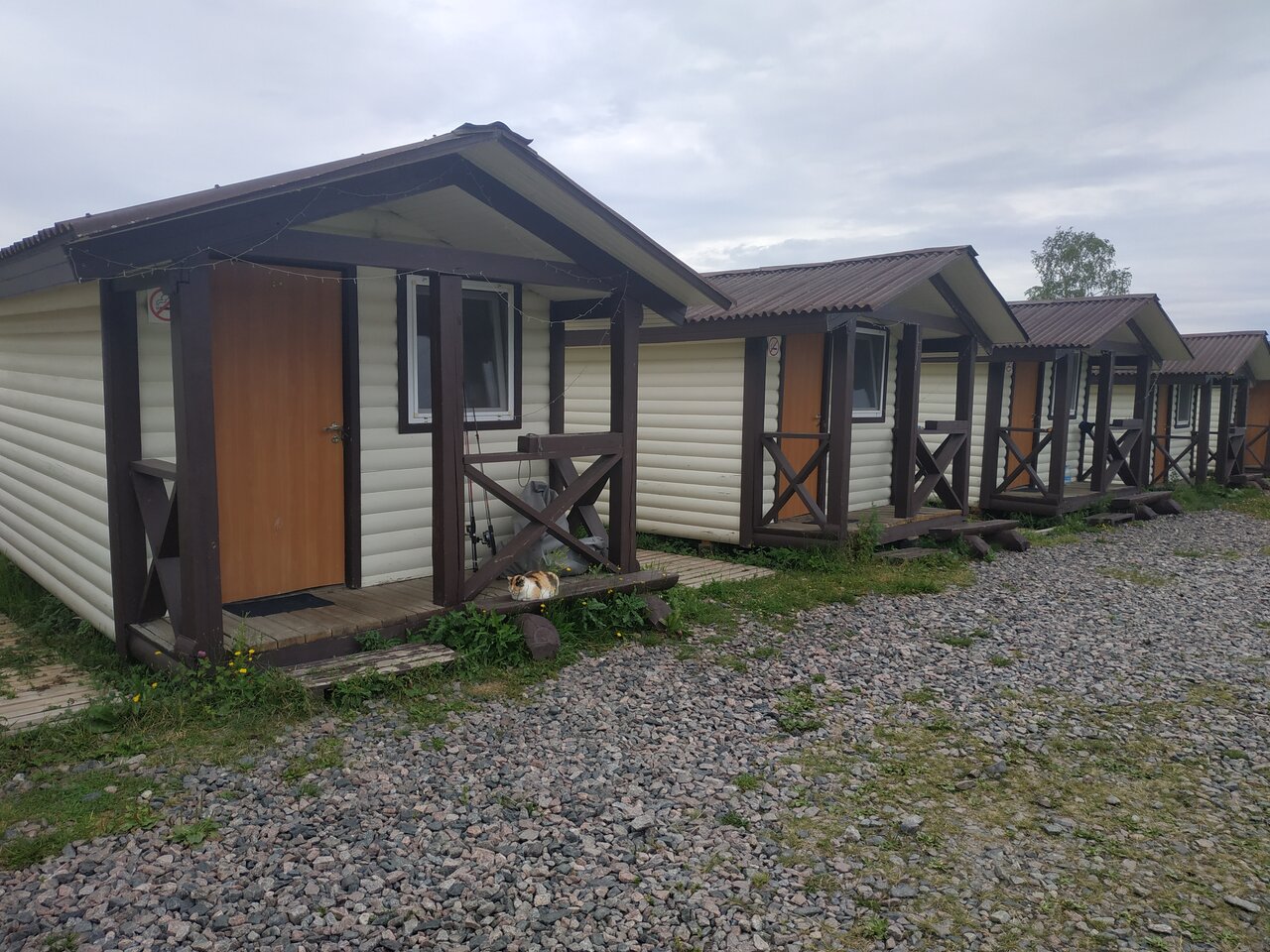 Отличное месторасположение прямо на берегу реки, которая впадает в Ладожское озеро. Всё время проводишь с видом на воду. Домики не большие, ровно на два человека, однако в каждом домике есть холодильник, микроволновая печь и столик. Душ, туалет, кухня находятся в отдельном доме. База отдыха рассчитана на мужской отдых и рыбалки или для отдыха непритязательной компанией.