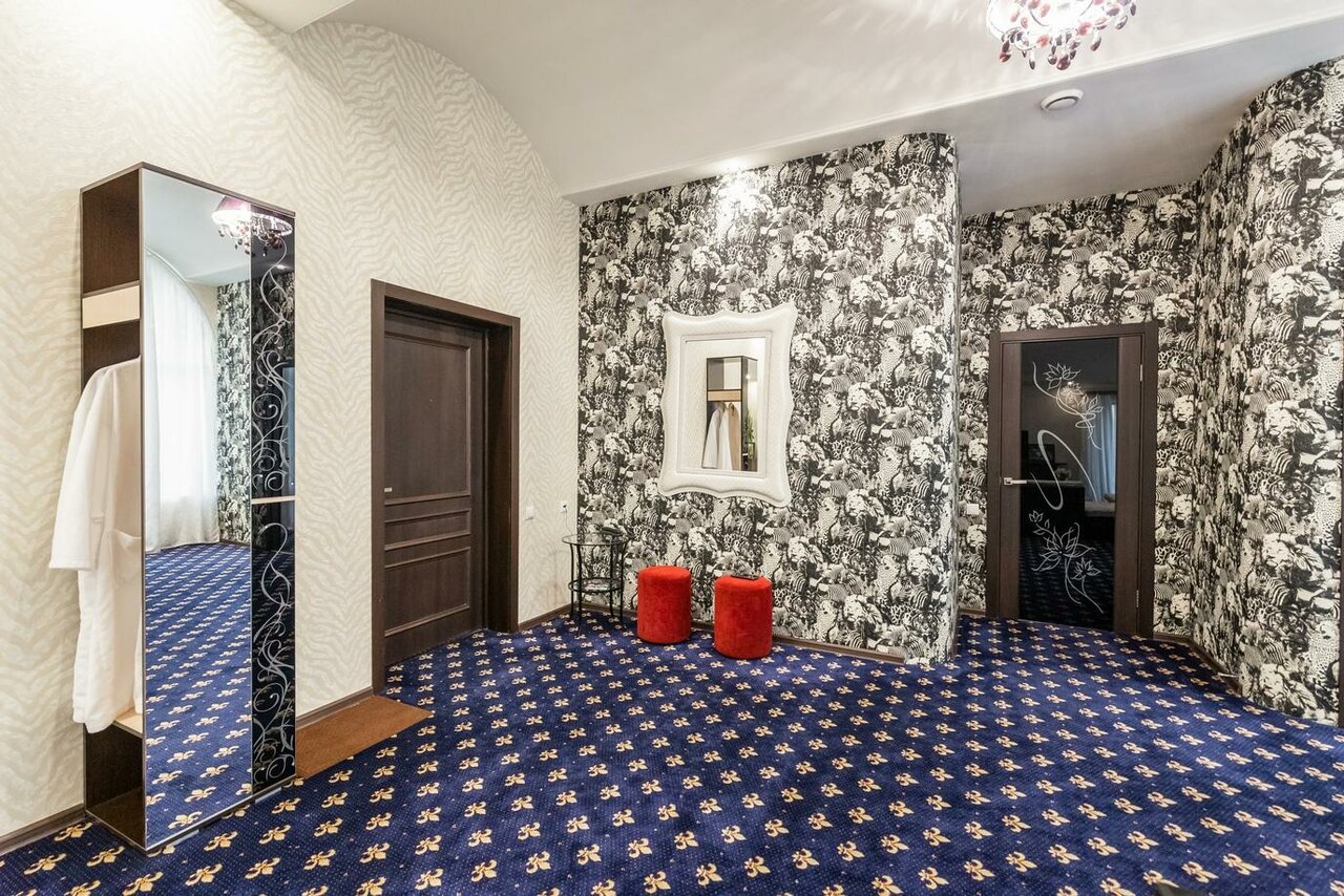 Гидромассажная ваннаКровать King Size с орто матрасомТелевизорАудиосистемаКондиционерХалатыТапочкиВаннаФенГигиенический наборГели / Шампуни