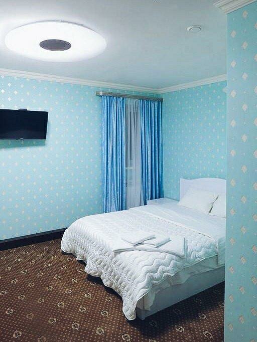 Стандартный двухместный номер (с 1-ой двуспальной кроватью). На территории гостиницы есть собственная охраняемая парковка (При наличии свободных мест бесплатно, резерв платный 500 рублей в сутки).