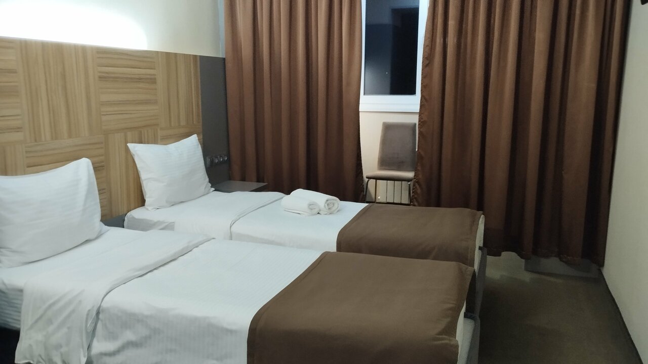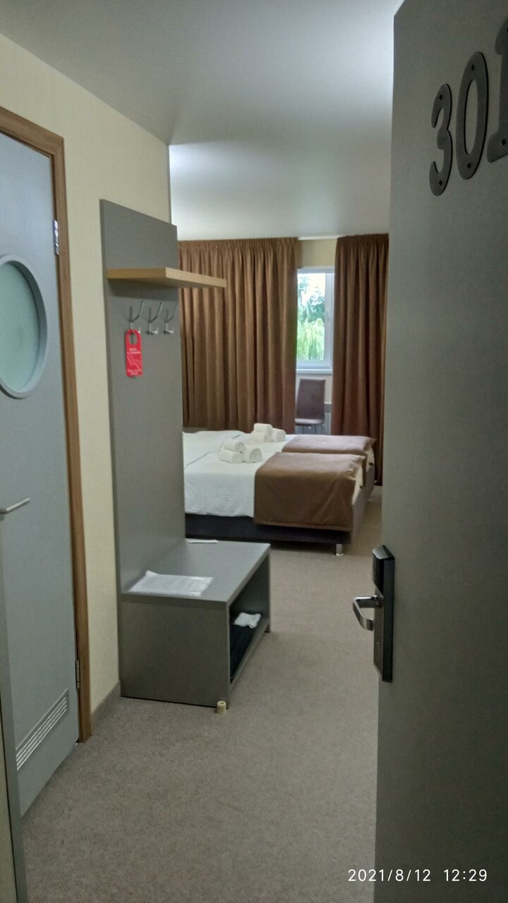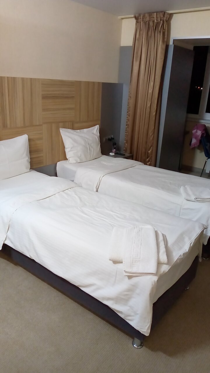 В номере чисто, комфортно. Есть все необходимое из мебели. В день заезда был неприятный запах в ванной комнате. Так же отсутствуют гигиенические принадлежности (зубные паста и щётка), фен по запросу на ресепшн. Завтраки скудные: есть каши 2 видов, омлет, вторые блюда, совершенно отсутствуют овощи и фрукты. Кофе с неприятным запахом кофемашины. Отель расположен далеко от центра, единственные варианты добраться это либо собственный автомобиль либо такси.