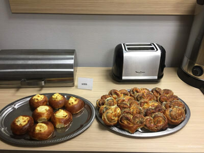 Отличная гостиница. Новая, аккуратная, продуманная. рабочее место на балконе — просто отличное. есть чайник, холодильник (очень маленький), кондиционер, хорошая кровать, плазма. Уютное освещение, много розеток. Кондиционер. Звукоизоляция хорошая. Завтрак — блины, каша и яичница (в небольшой вариации). Советую!