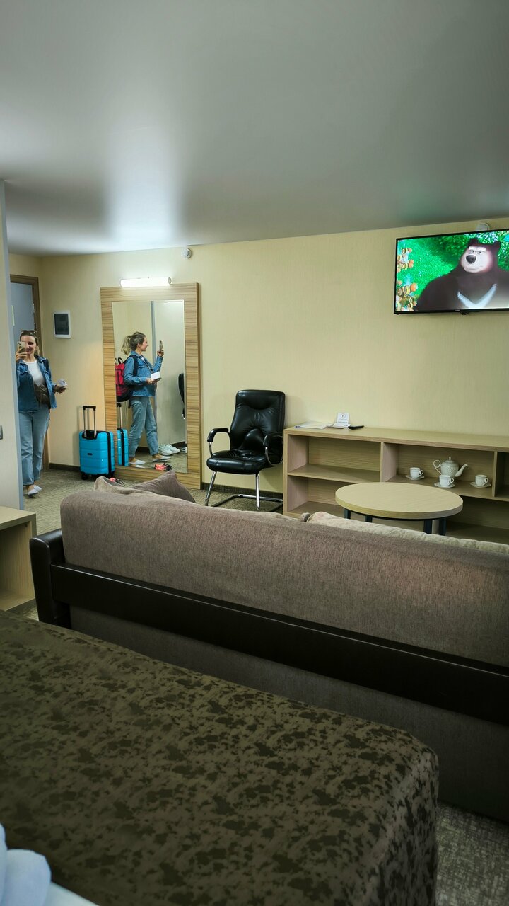 Неплохой отель, отзывчивый персонал, свежие номера, есть парковка для авто. Из минусов это расположение, далеко от центра города. Слабая шумоизоляция.