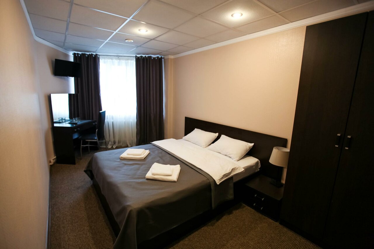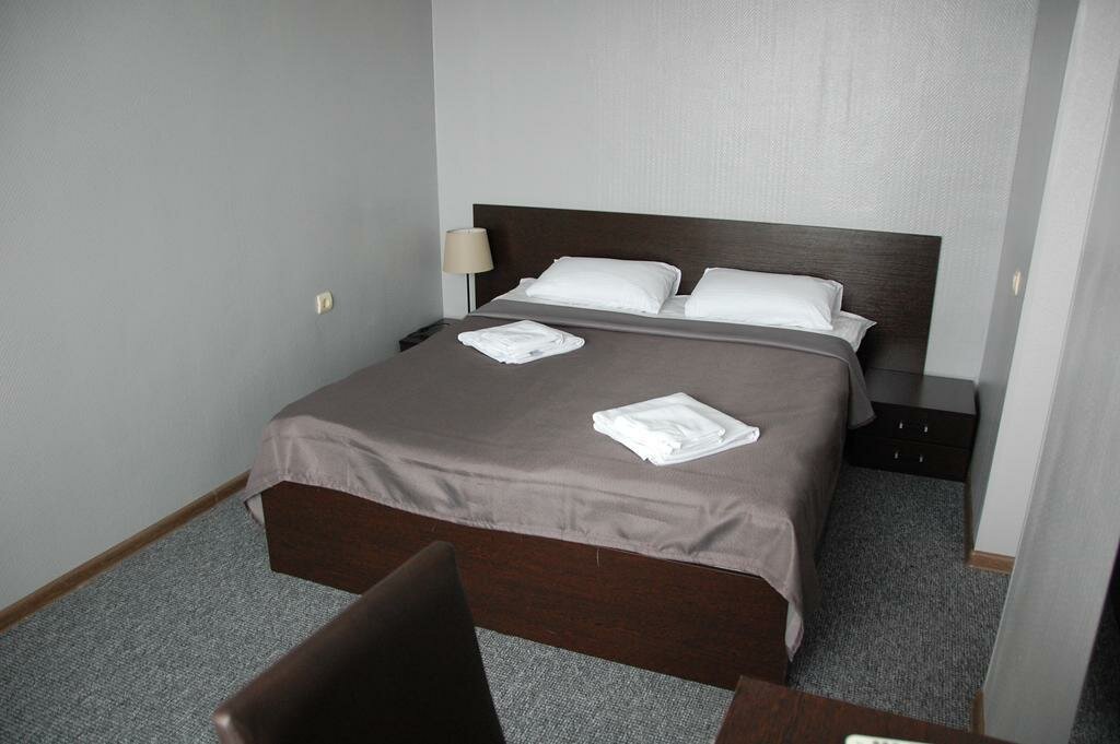 Арендуют этаж в здании старой советской гостинице. Но внутри все по современному. Ночь 2тр. Кровать, ванная, ковролин. Чисто, тихо. Еды нет. Из плюса — практически на центральной площади около городского парка который облагородить. Вечером летом гулять очень приятно.