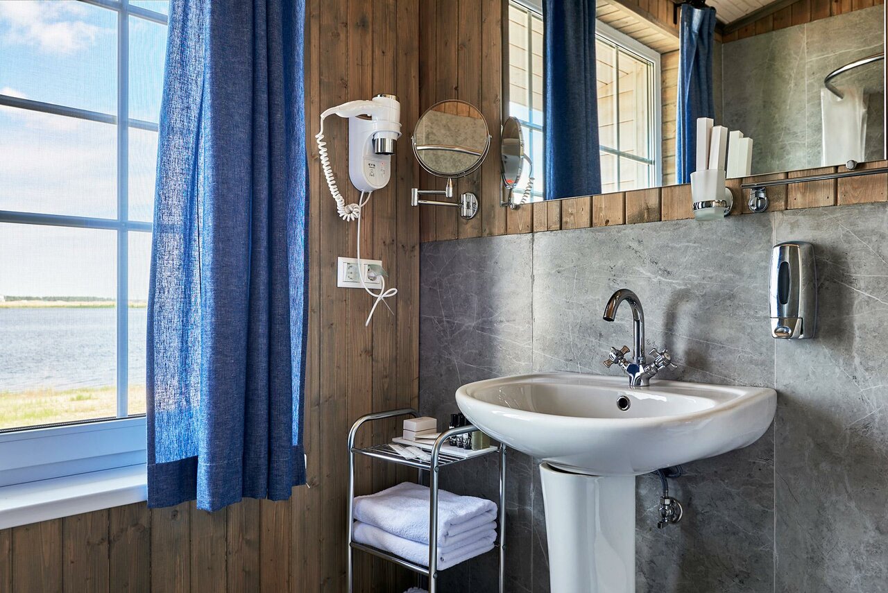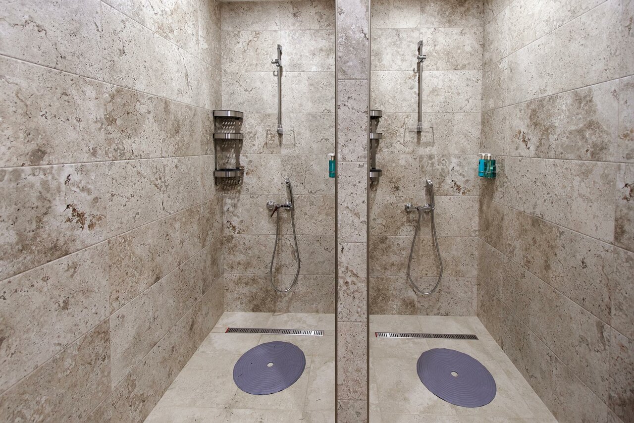- Удобные душевые и раздевалки на пляже.