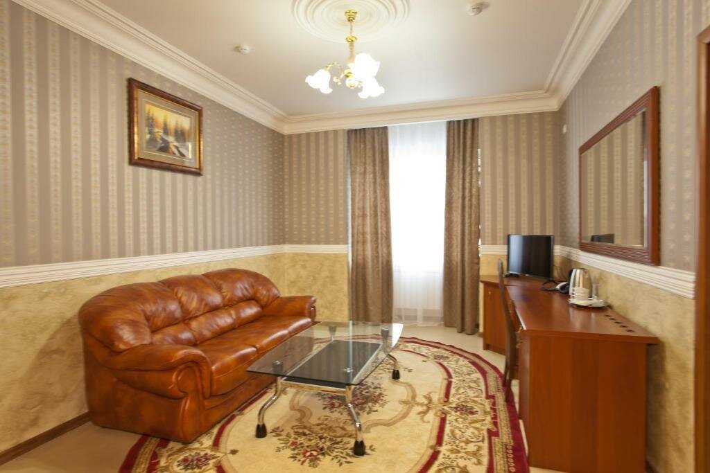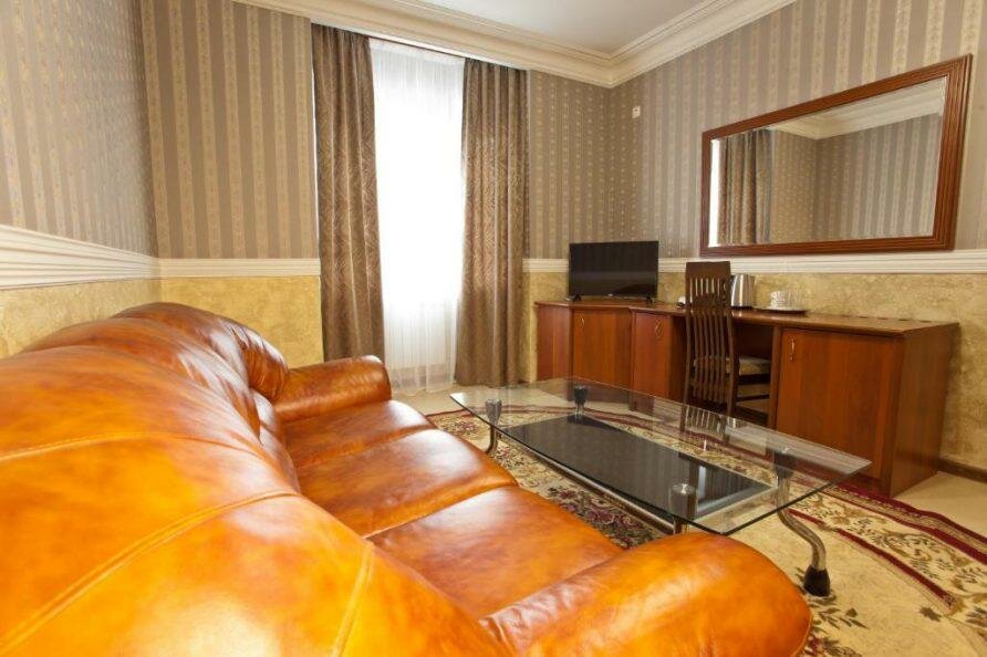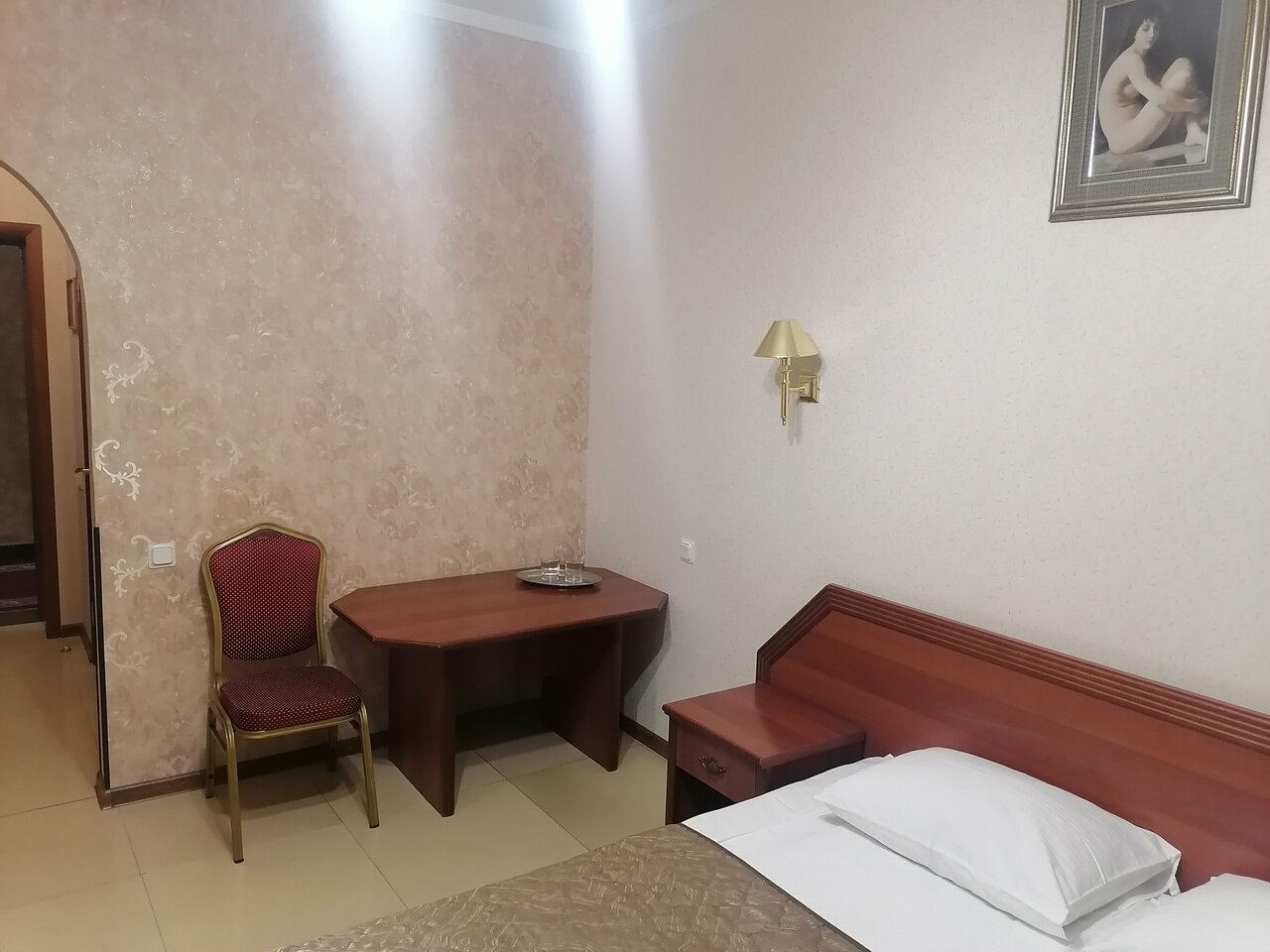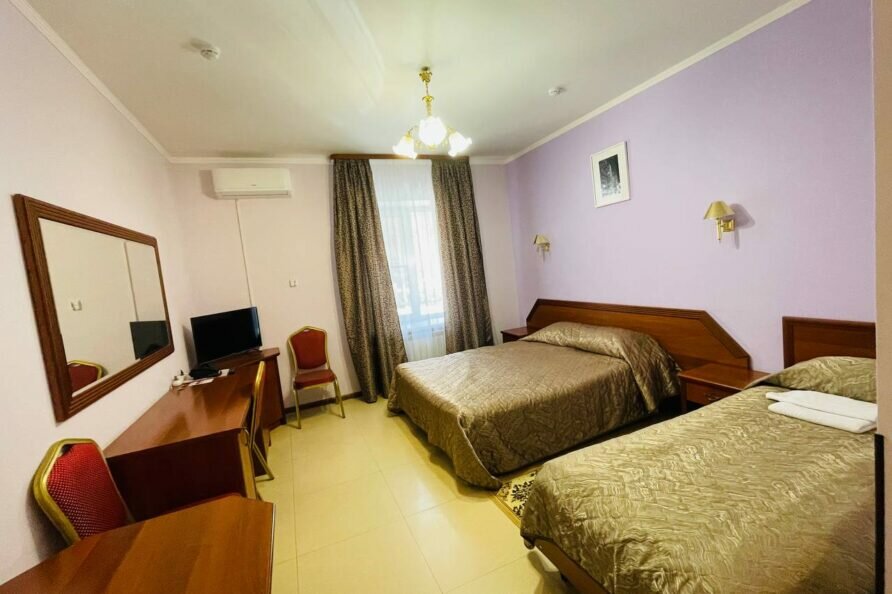 Отель на 5 баллов. В стандартном номере есть ванна, холодильник, можно взять чайник и сервиз в номер, много света, хороший телевизор, кондиционер, белоснежное бельё и мягкие кровати. Коллектив приветливый. Можно заказать завтрак. Номер лучше брать с окнами во двор.