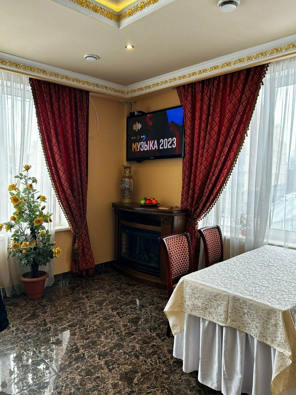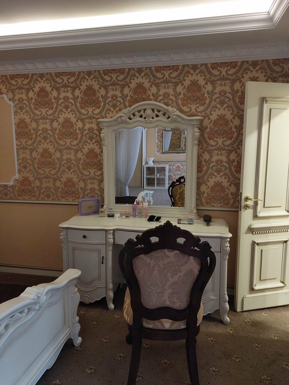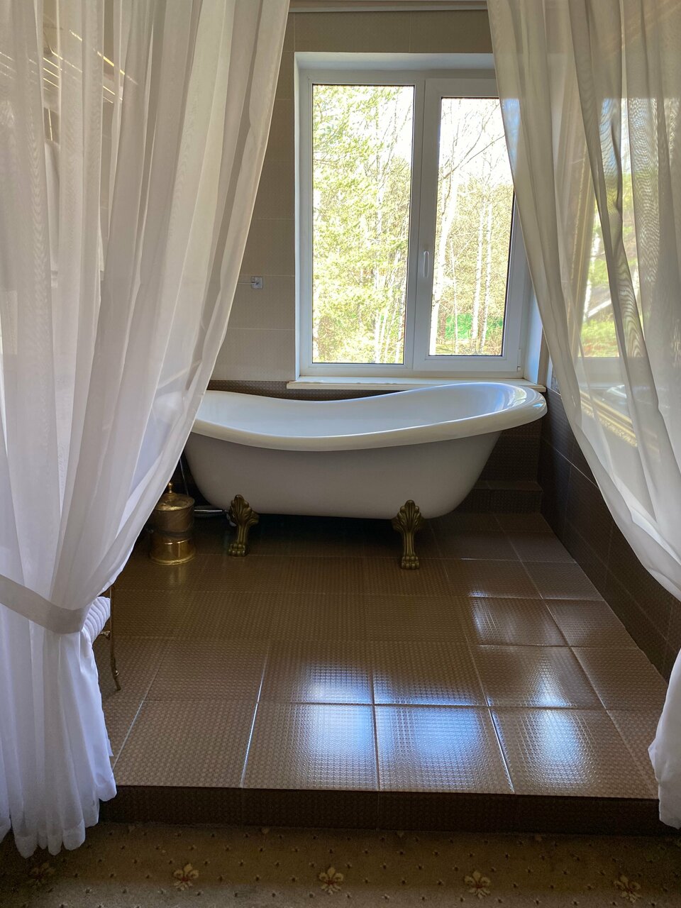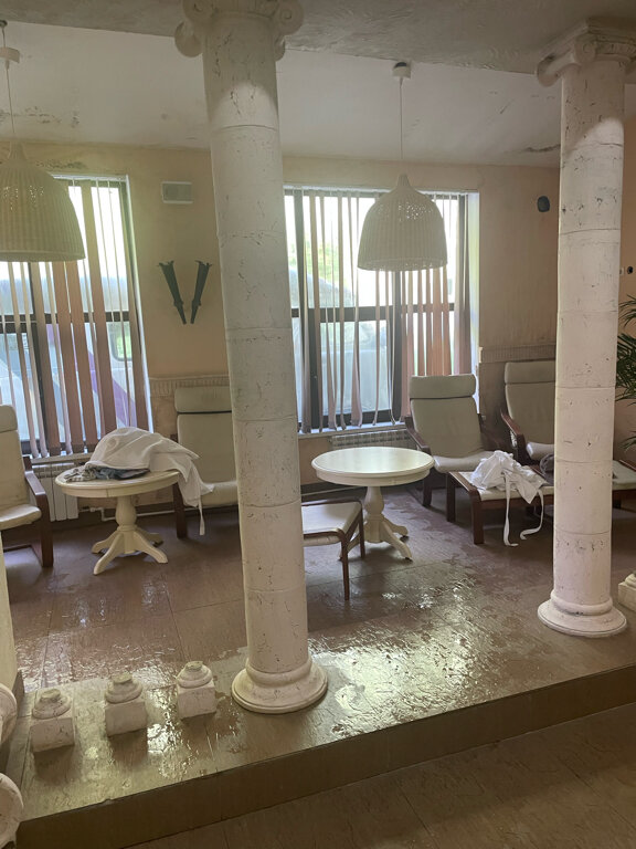 Поставил 4 и то это с большой пребольшой натяжкой. Интерьер дорого- богато, цыгане такой любят, я не очень. Спа / зона требует генеральной уборки с мощными чистящими средствами, мы зашли и вышли, за переживали что нибудь там подхватить( пахнет сильно кошачей мочой там кстати), номер пойдет , мы не царские особы и не такое видели, бывало и похуже, нооо требуется везде уборка, какое то чувство захламленности не отпускает тебя. Простыни застиранные до дыр, подушки бы надо поменять, одна ничего была вторая каменная. Телевизор включали не пультом а кнопками сбоку, ибо пульт не от него был. Ну а так то пафосно, ванная вся такая царственная , встанешь в ней и в окошко можно свои прелести показывать , хорошо хоть не жилые дома а хозяйственные помещения. По еде плохого не скажу ничего, особо не озадачивали кухню, ужин заказали в местечковом кафе — шашлычок. Короче в целом требует ремонта и уборки эта база отдыха. Больше подходит не для отдыха, а для утех, понимаете куда я клоню.