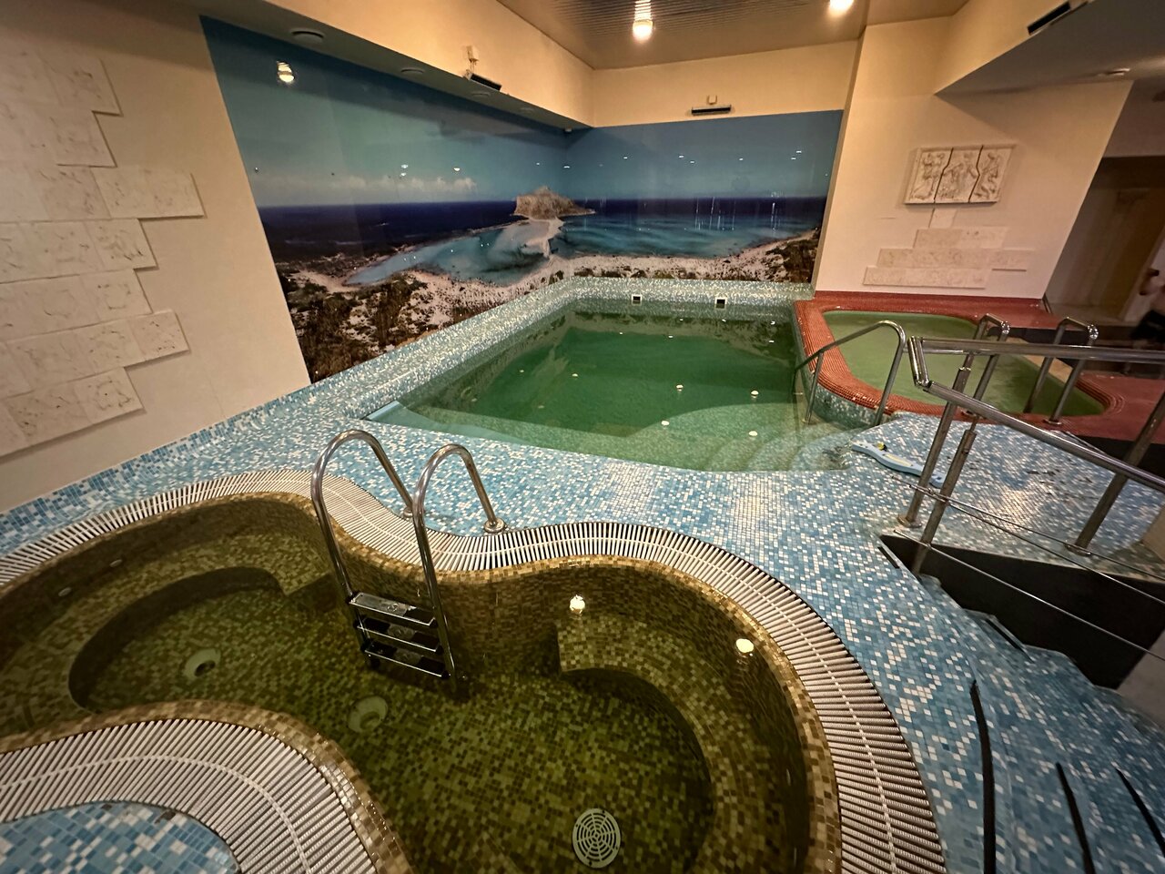 Начитавшись хороших отзывов поехали туда на выходные отдохнуть. Из плюсов: внимательные сотрудники,на этом плюсы заканчиваются. Очень пахнет канализацией везде. В спа- грязная вода в бассейне с плавающими волосами,аж заходить не хочется. В хамаме так же пахнет отсыревшими полотенцами, сыростью. Очень хотелось бы отзыв положительный оставить,но увы…