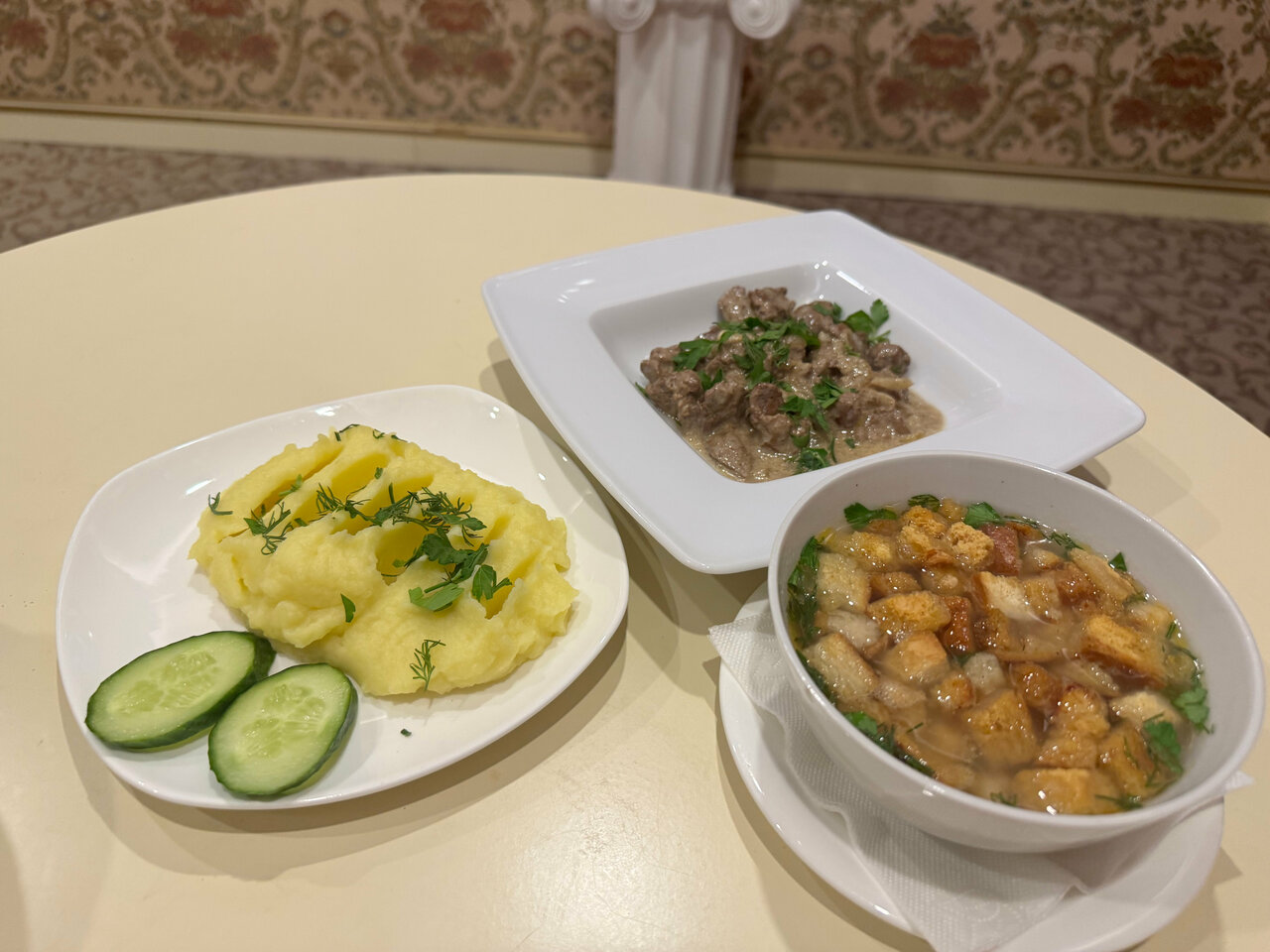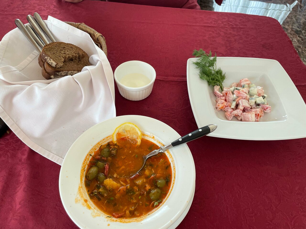 Ужасно. Были год назад было лучше. Номера нуждаются в ремонте, жили на втором этаже (не Эконом), матрас промятый, болела спина, розетке от тв вываливается и искрит, душ течет, вода вся в номер, нет ни фена, ни ложечки (просили у друзей проживающих в соседнем номере), шумоизоляции ноль, в номере большая влажность. Мебель вся нуждается в замене. Спа, которое входило в стоимость не работало, запустили днем, пока нагрелся хамам уже было часов 19, спа до 20, попросили уйти,тк закрывается. За что заплатили, зачем приехали, не понимаю. Вода в бассейне терпимая, но провели в спа меньше часа. Ужин заказали на 20-30, ждали до 21. Выбора в меню нет. Лучше бы заказали доставку. Утром спа ждпли пока нагреется, пора уже уезжать было, муж сходил минут на 20 и поехали. Выброшенные деньги. Завтрак входит в цену, но есть особо нечего, порции мизерные.