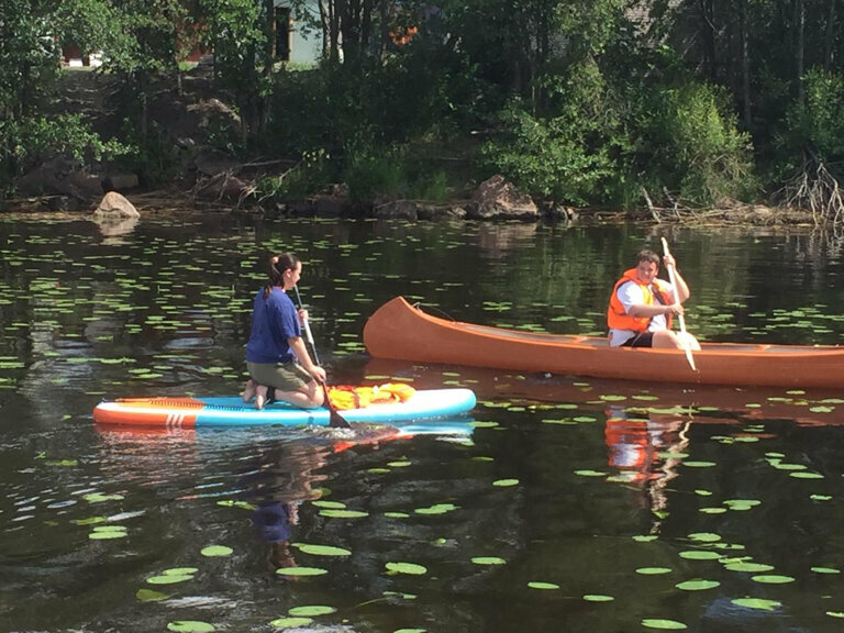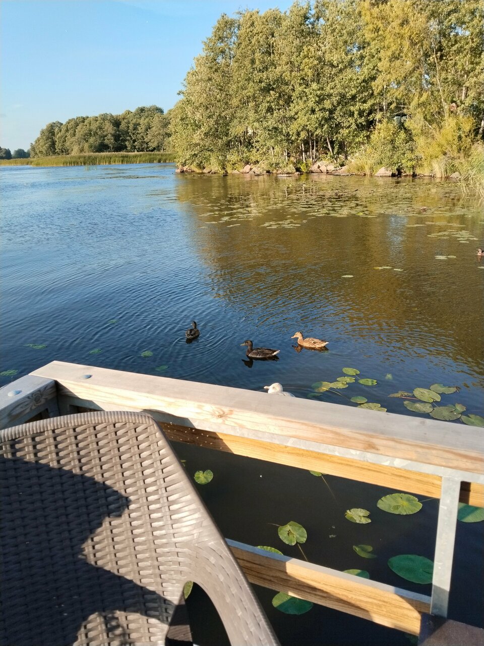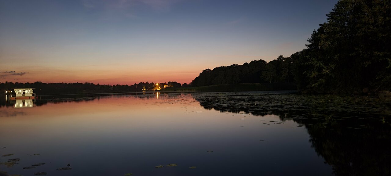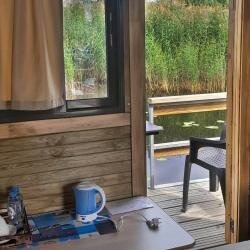 Отличные впечатления от знакомства с аквакемпингом. Два в одном — природа и удобства гостиничного номера (белоснежное белье, раковина и туалет в номере, посуда). Наш домик был на двоих. Домик немного покачивается, слышны звуки природы, открываешь дверь и любуешься видами. Было классно отплывать от дома на сапе, пить кофе на террасе. Сотрудники аквакемпинга очень внимательные, приглашают гостей на бесплатную водную прогулку. Кажется это модный сейчас глэмпинг, для тех кто хочет пожить на природе, но с удобствами. Локация замечательная — из домика была видна башня Святого Олафа. Надеюсь приехать ещё раз, уже с детьми, взять для этого домик побольше. Думаю для детей был бы незабываемый опыт, жизнь на своём корабле!