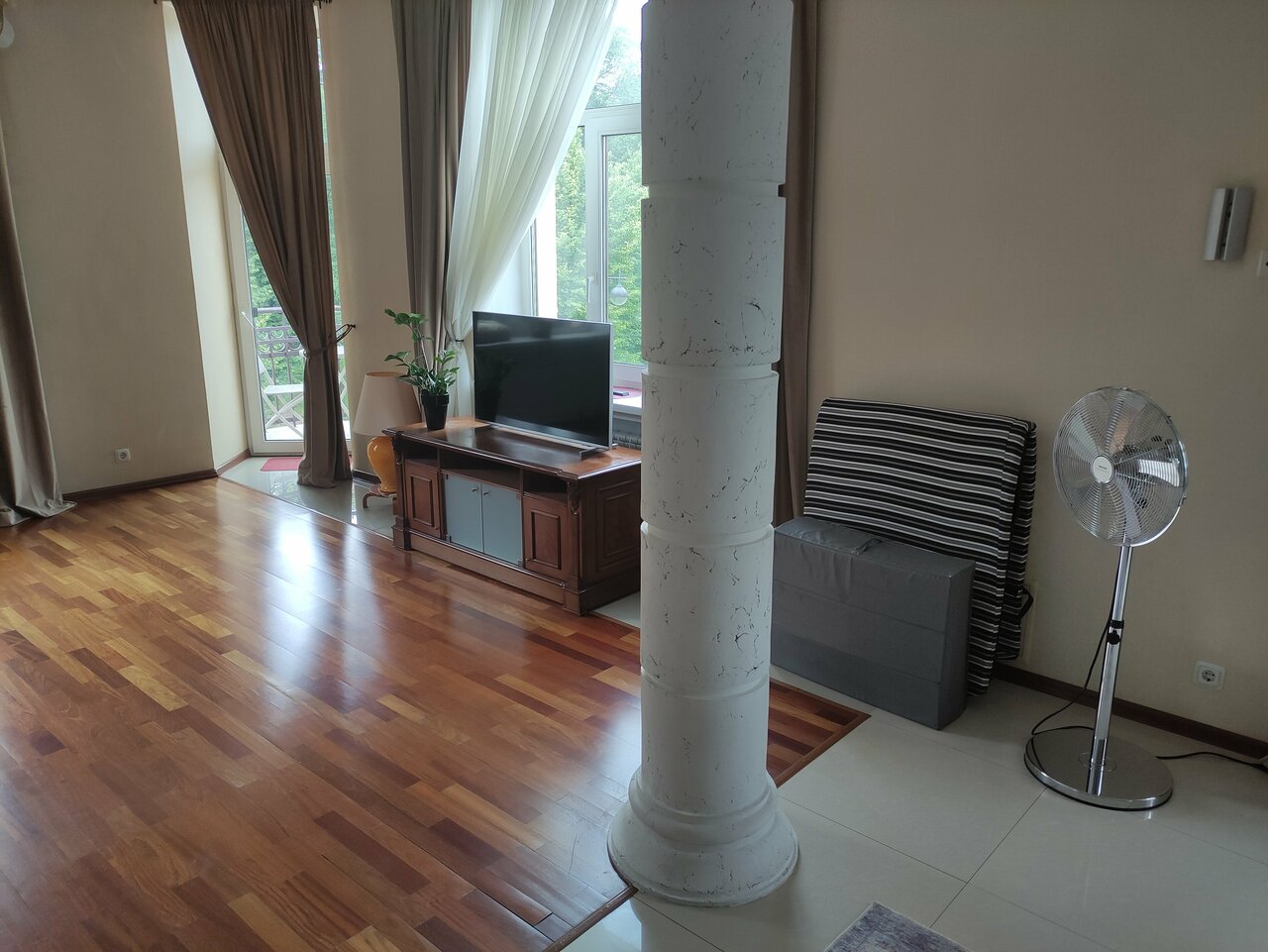 Чисто, стильно, есть все необходимое для комфортного проживания. Самостоятельный заезд. Нас заселили раньше, что очень приятно. Владелец всегда на связи, быстро отвечает, всегда готов помочь. Единственное, на что стоит обратить внимание, что двухэтажные апартаменты — это первый этаж и подвал. Окна есть на обоих этажах, но в подвальном этаже довольно влажно. Ну и соответственно лестница вниз, а не вверх. С детьми это может быть важно.