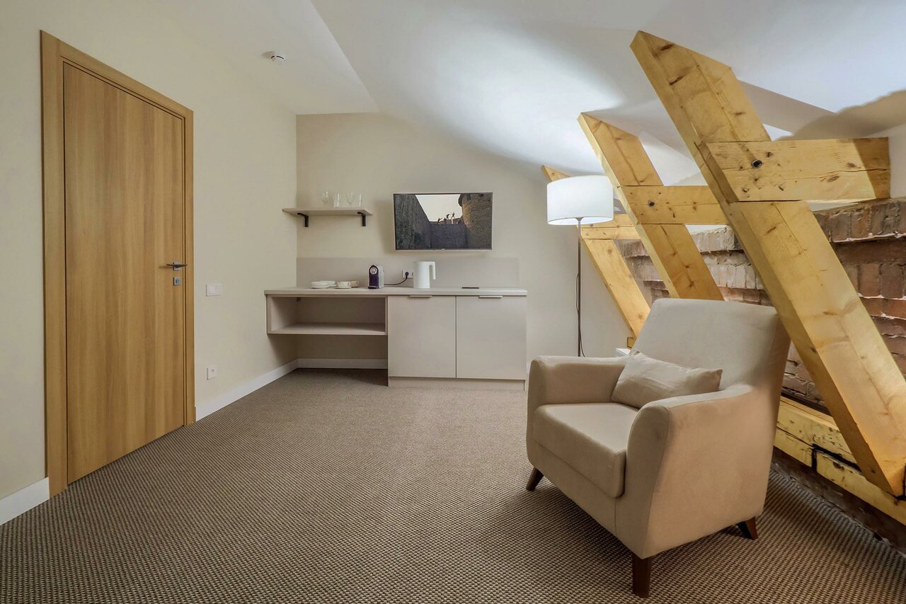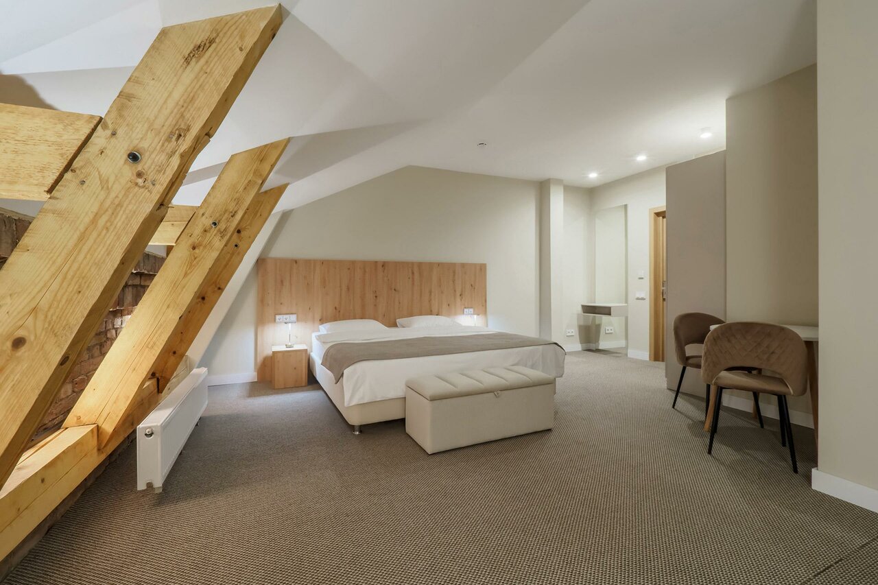 Как в современном замке в центре старого города! Витиеватые лестницы и сохраненные кирпичные кладки стен мысленно уносят из 2025го на пару-тройку столетий назад. Очень понравилось всей компании, включая детей. В каждом номере кофе-машина и приветственные крендели, новогодние сладости. Очень удобные кресла, новая техника, достаточно посуды для уютных посиделок. Обязательно вернемся ещё!