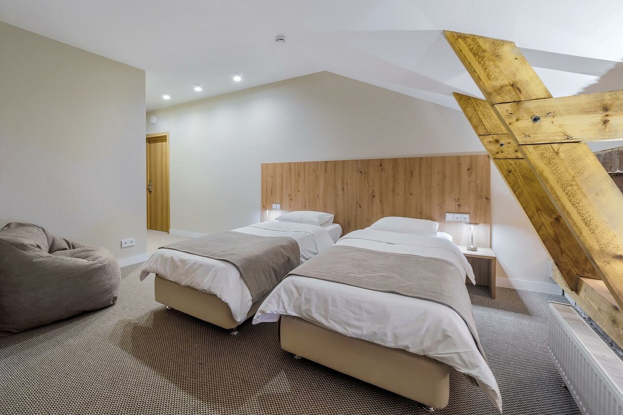 Отдыхали семьёй, очень понравился отель. Номер был ‘Семейный Мансарда’.Свежий ремонт,тепло ,красиво,уютно. В номере есть всё необходимое. Персонал это вообще отдельная история) девочки очень приветливые,доброжелательные . Спасибо большое за тёплый приём.