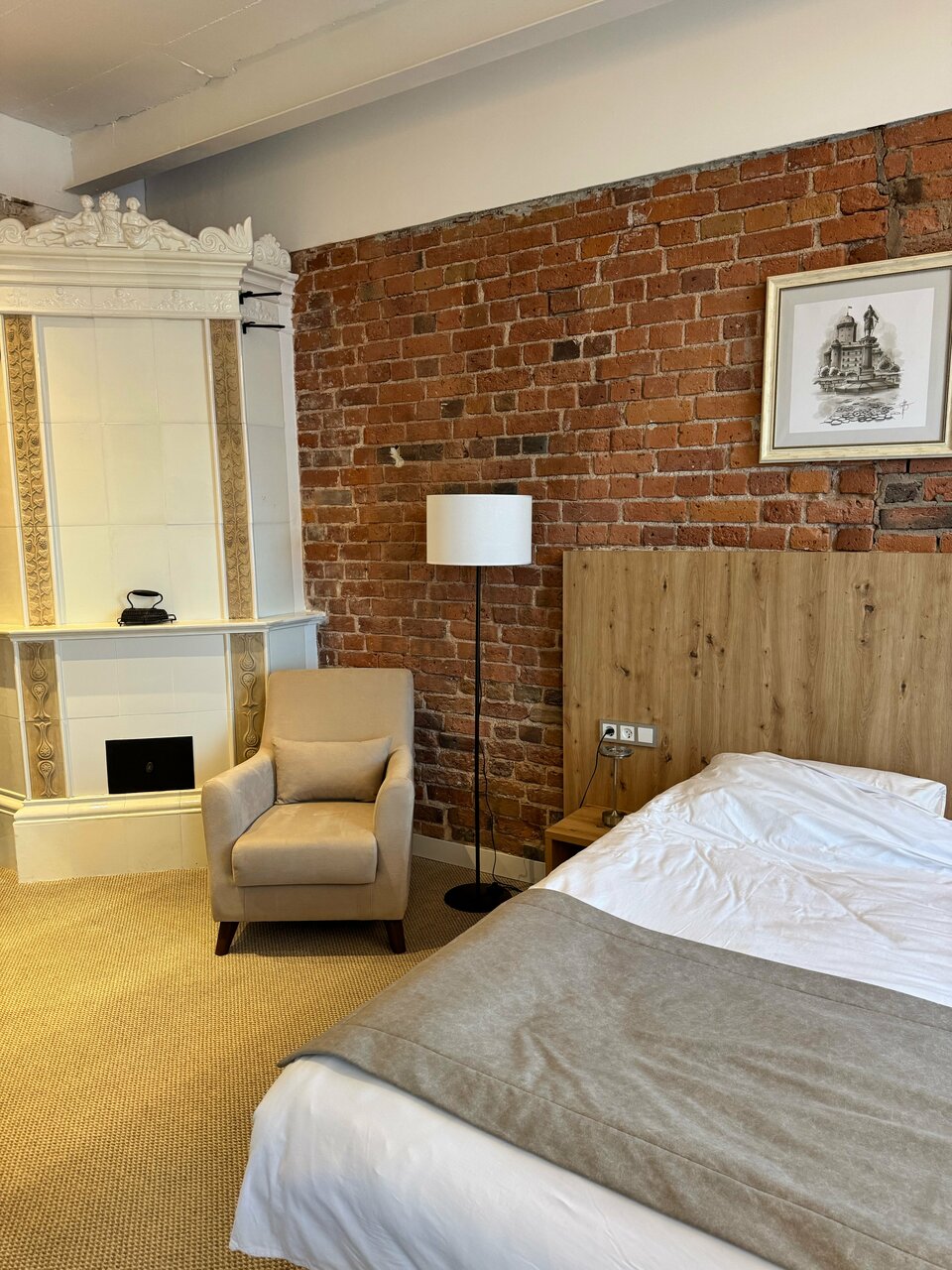 роскошный отель в самом центре Выборга с богатой историей. При этом отель предлагает современные удобства и услуги) Особенно хочу отметить, что в номерах сохранили оригинальные стены после реставрации здания и изразцовые камины. Можно представить, сколько всего видели эти стены за свою историю! Обязательно вернусь)