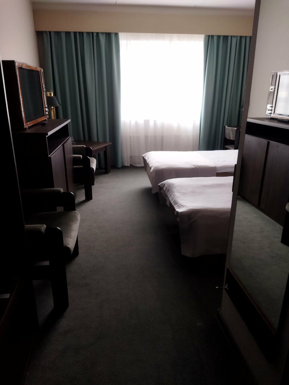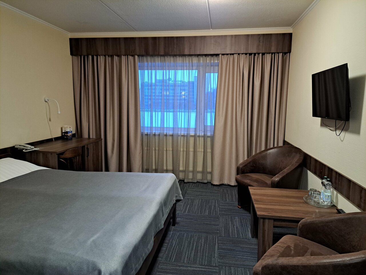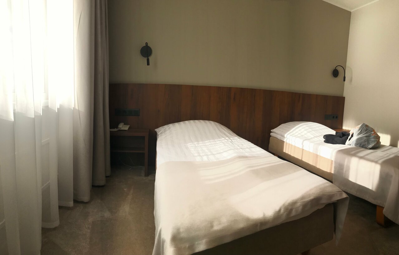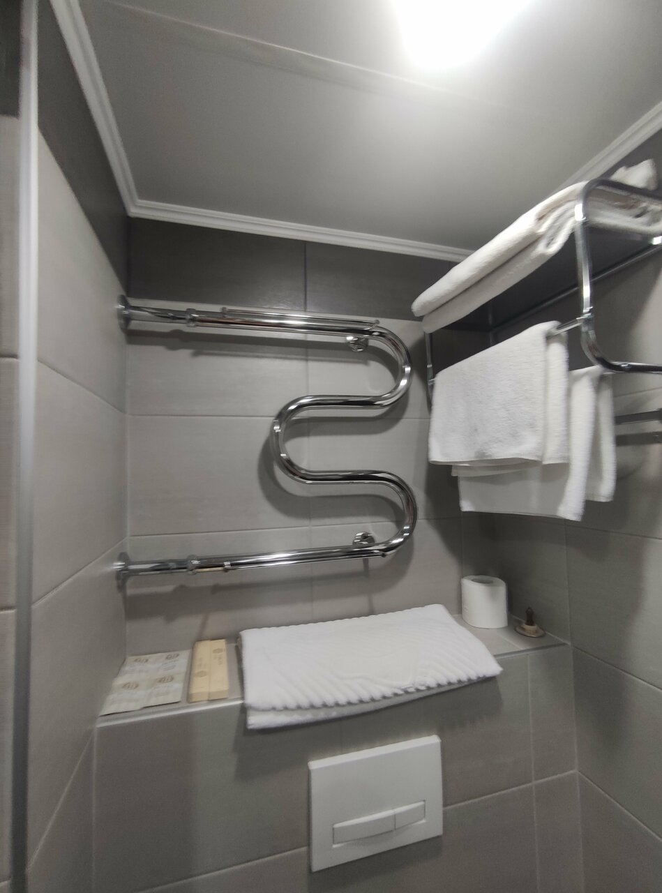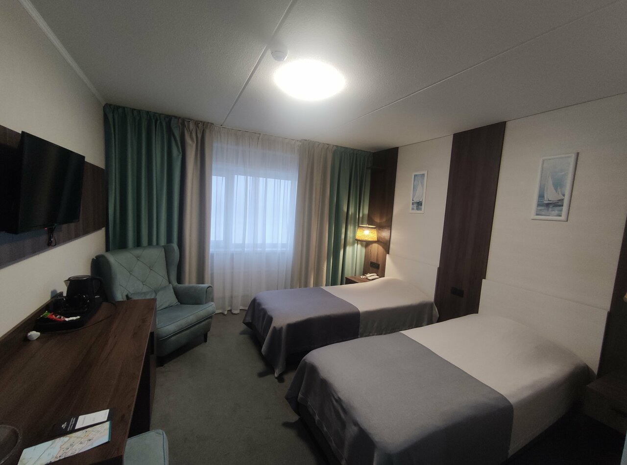 В номере есть всё необходимое, достаточно просторный, чисто.Персонал приветливый. Завтраки и обеды достойные. Расположение от центра не совсем близкое (относительно других отелей),но от вокзала-близко.