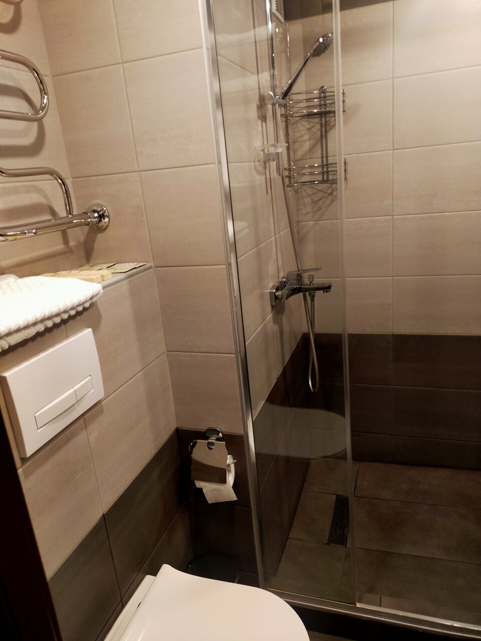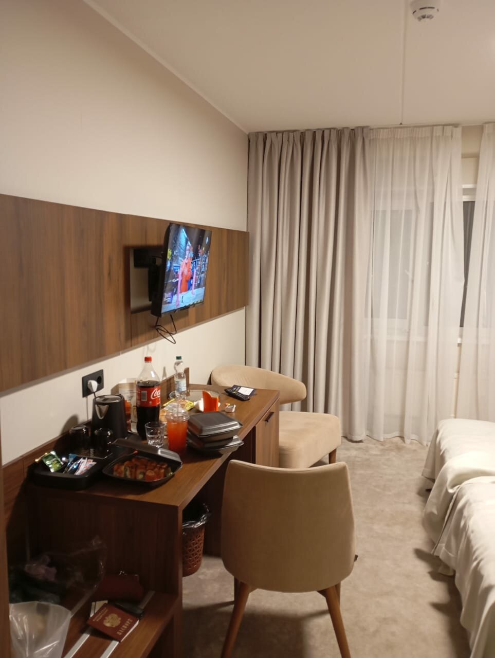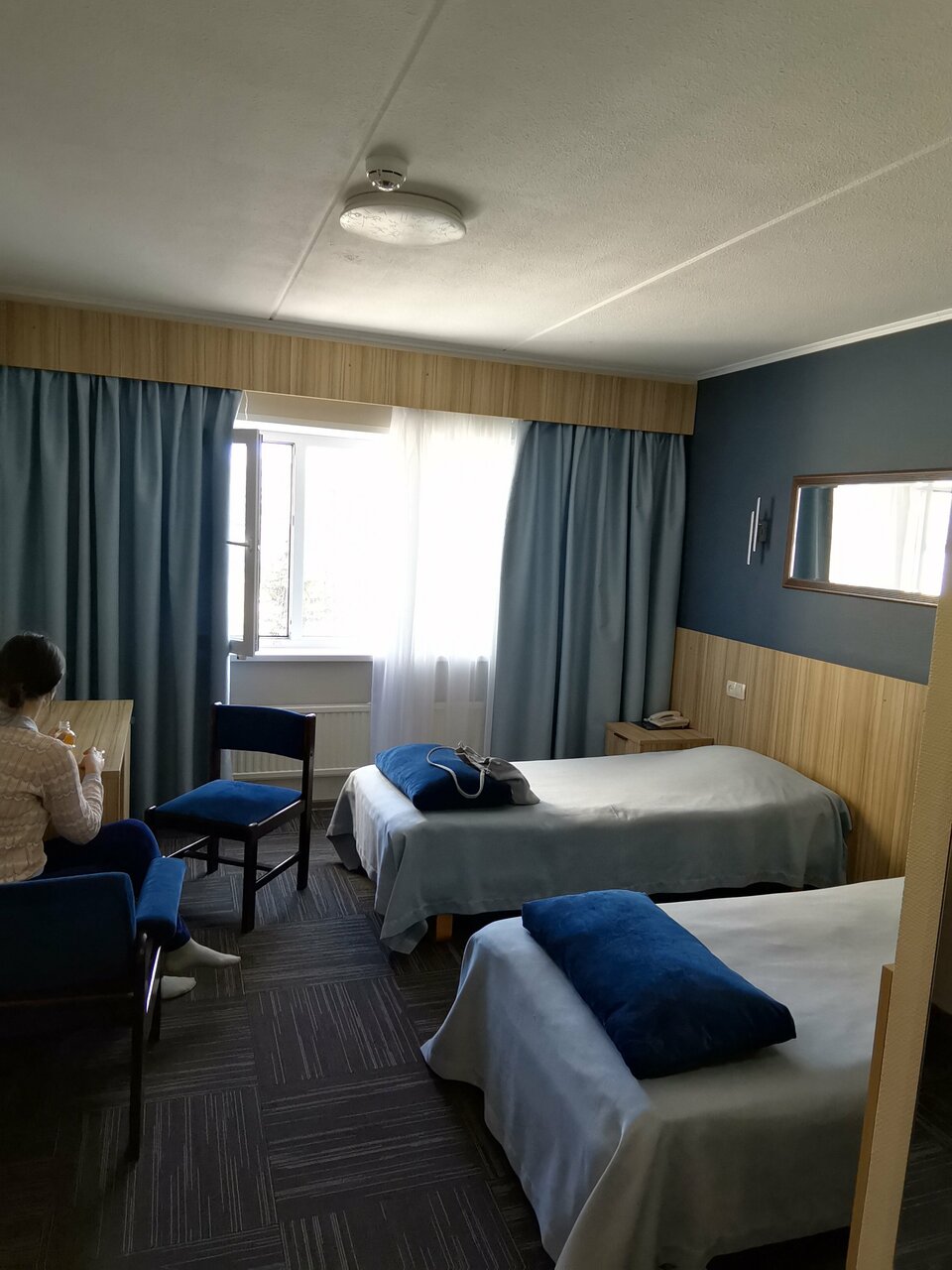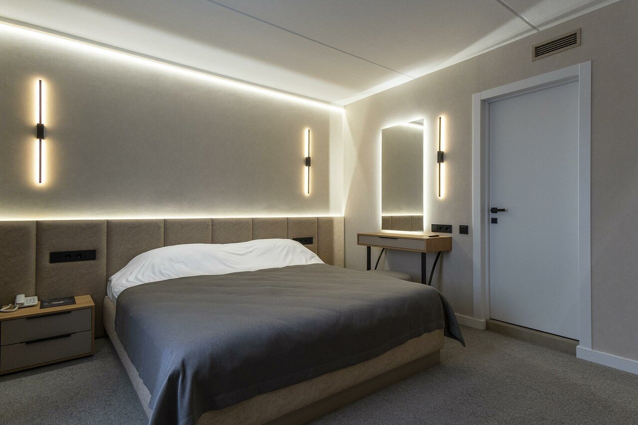 В номере есть всё необходимое, достаточно просторный, чисто.Персонал приветливый. Завтраки и обеды достойные. Расположение от центра не совсем близкое (относительно других отелей),но от вокзала-близко.