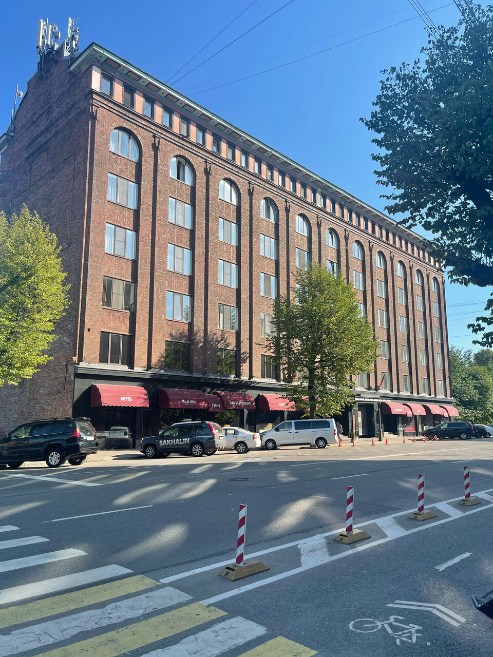 - Реанимированный ресторан на 2 этаже (панорамные окна, классический стиль).; Чистые номера.; Интересная архитектура (здание 1929 года постройки, финское здание).; Большие окна с широкими подоконниками.; Удобное расположение (центр города, рядом с ж/д вокзалом).