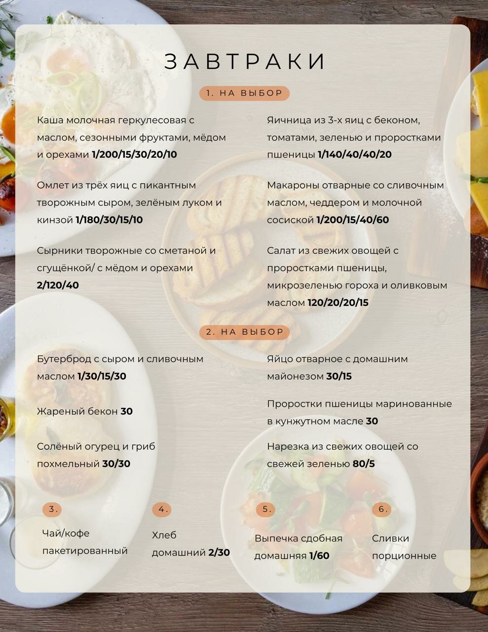 с завтраком по меню