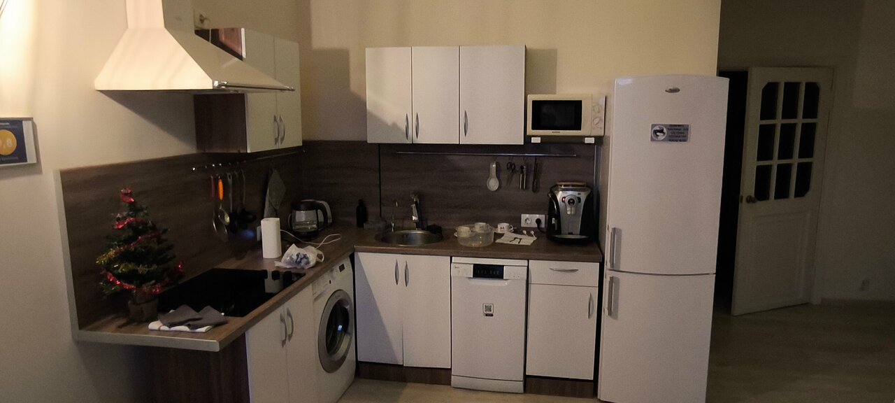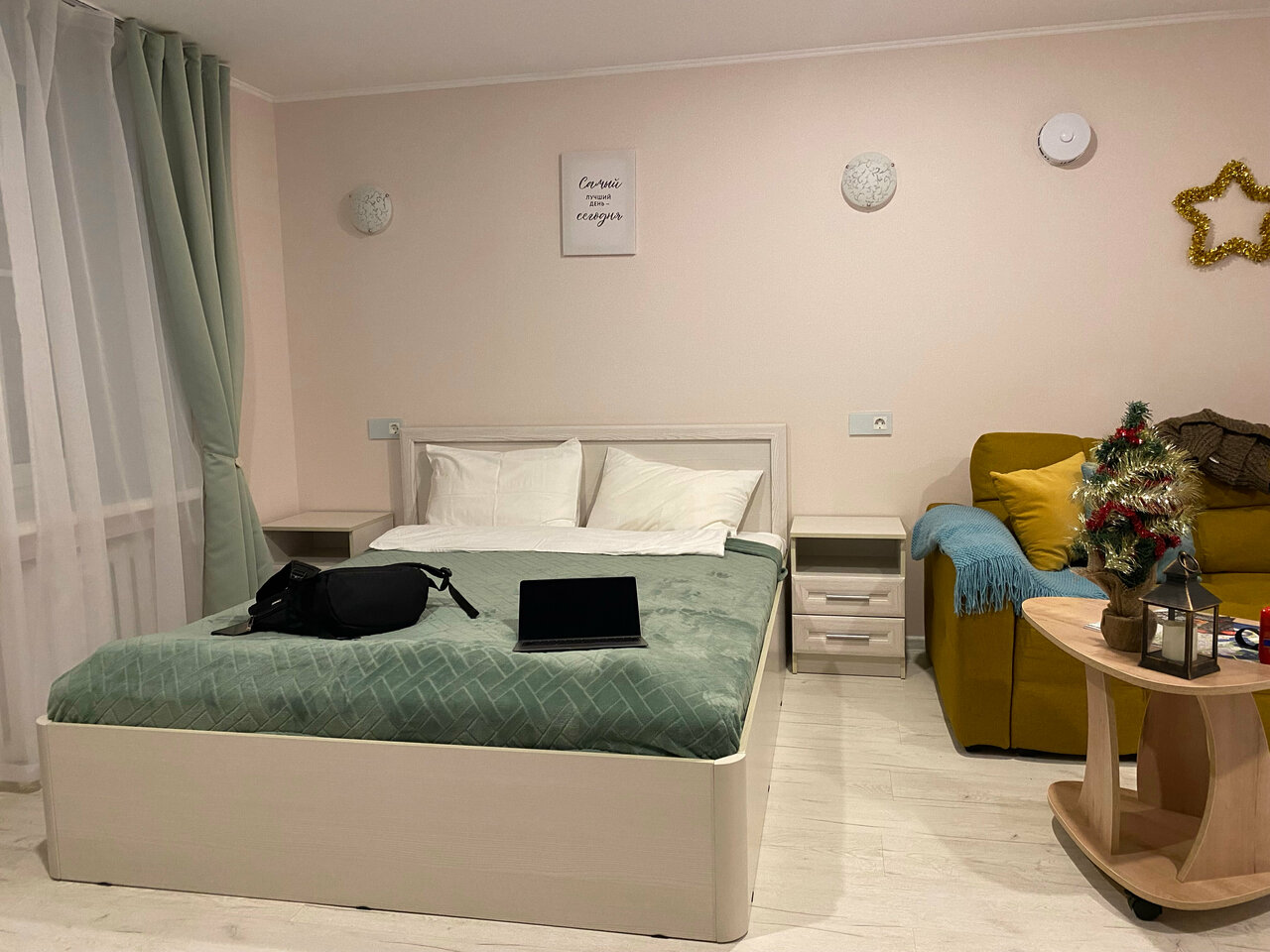 - Дополнительные удобства (джакузи, стиральная машина, гладильные принадлежности).; Бесплатная парковка рядом.; Бесконтактное заселение (удобные инструкции в Telegram-боте).; Удобное расположение (близко к ж/д вокзалу и достопримечательностям).; Продуманные мелочи (инструкции к технике, рождественская ёлка).