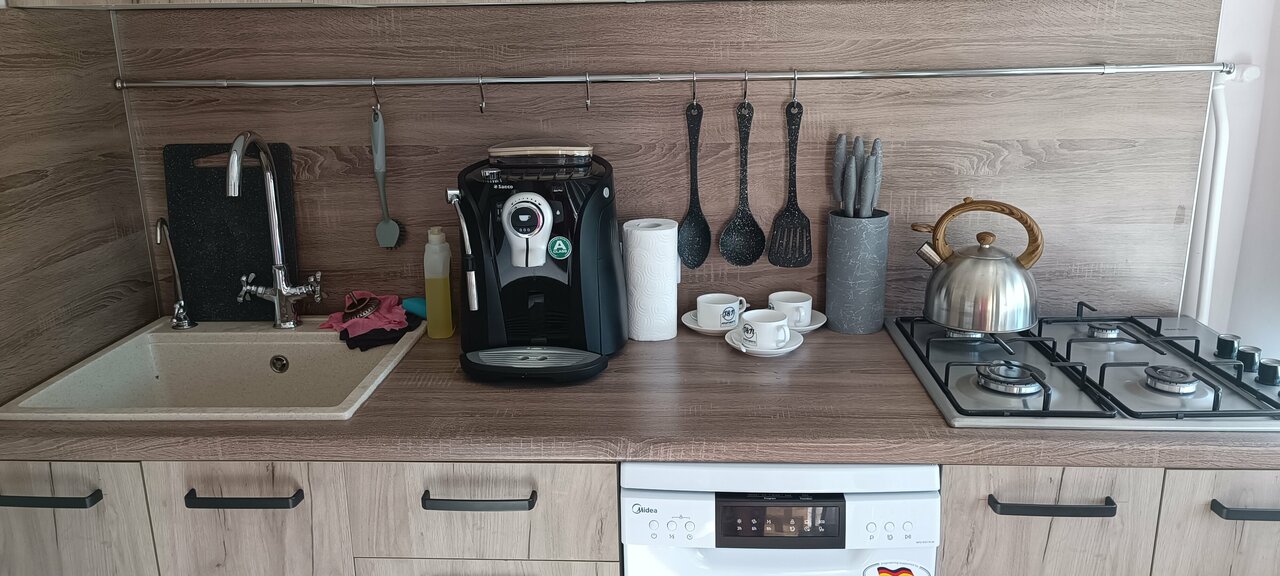 - Полностью оборудованная кухня (плита, микроволновка, посудомойка, кофемашина).