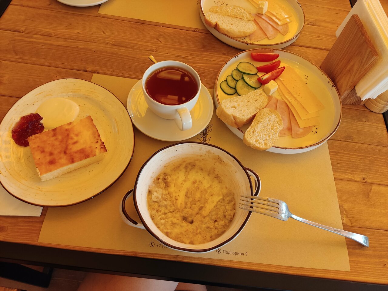 - Вкусные завтраки (овсянка, гренки, яичница).