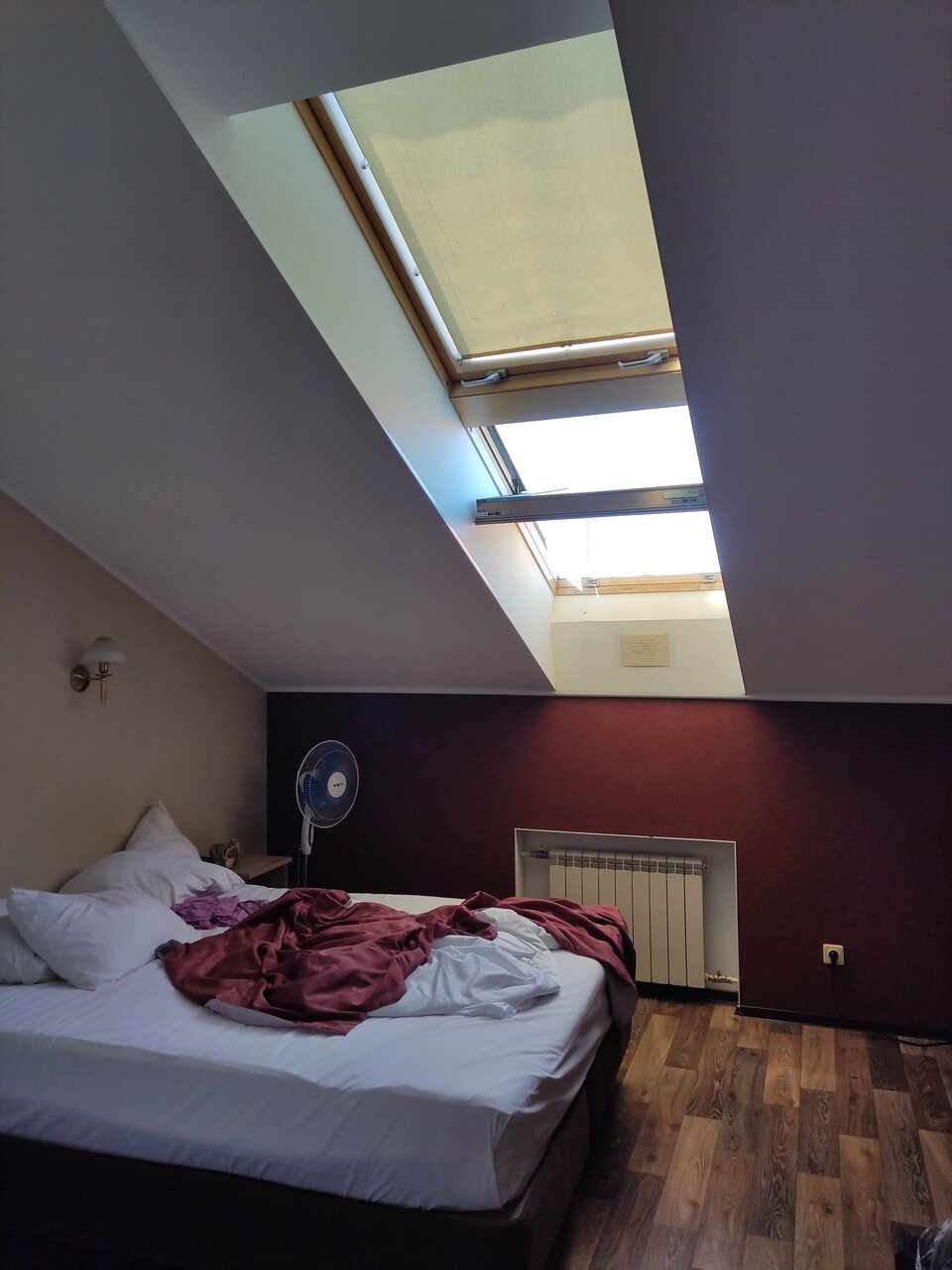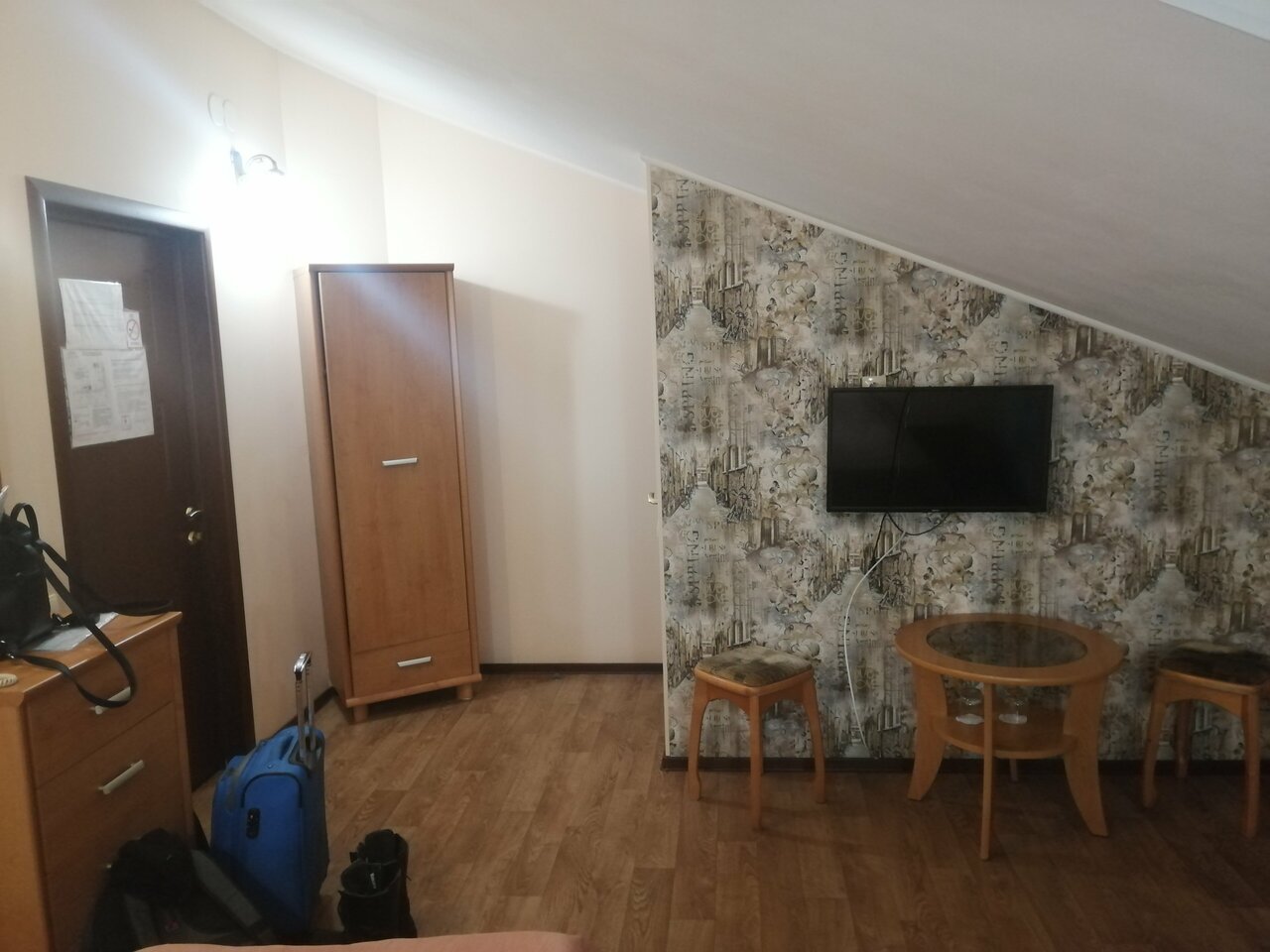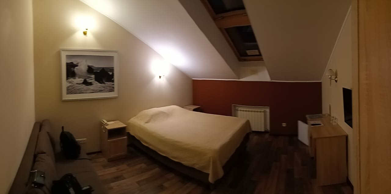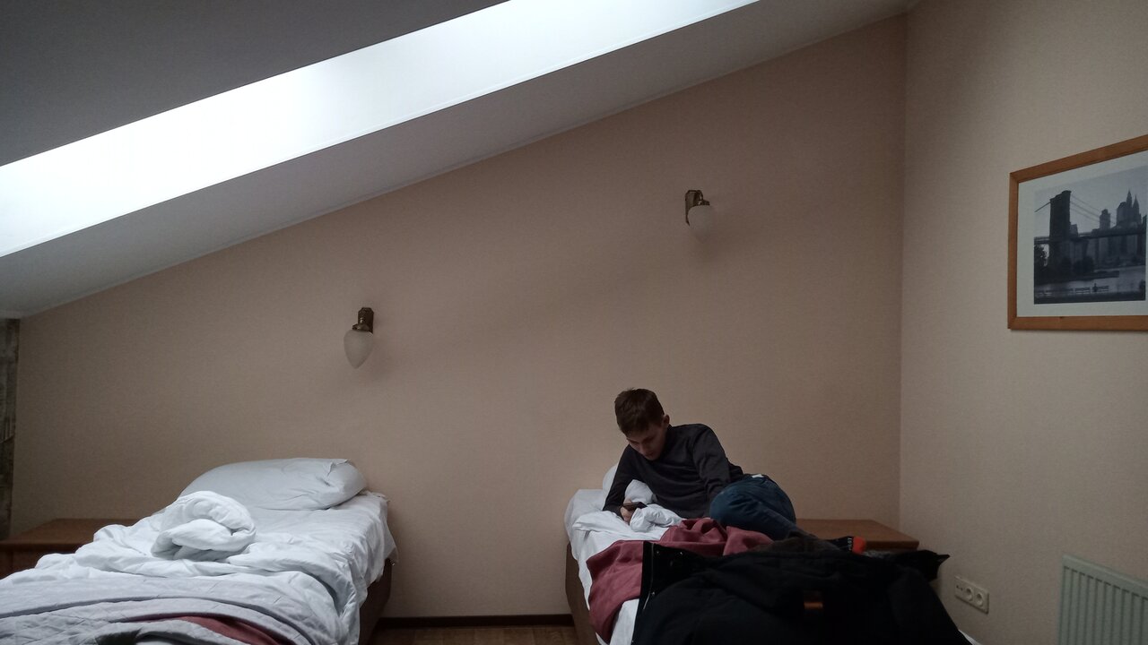 У нас был мансардный номер, на самом последнем этаже, на две персоны с отдельными кроватями и диванчиком. Большой и чистый! Минус — под утро что-то громыхать стало на крыше. Источник не нашли. Завтраки средние, но заезжать можно.