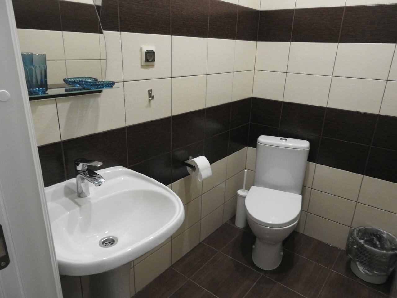 Площадь номера 25 м. кв. на втором этаже гостиницы Lagom в ВыборгеВ номере двух ярусные кровати, телевизор, бесплатный WiFi, обеденный стол, стулья, туалет с умывальником. Душевые кабины в конце коридора
