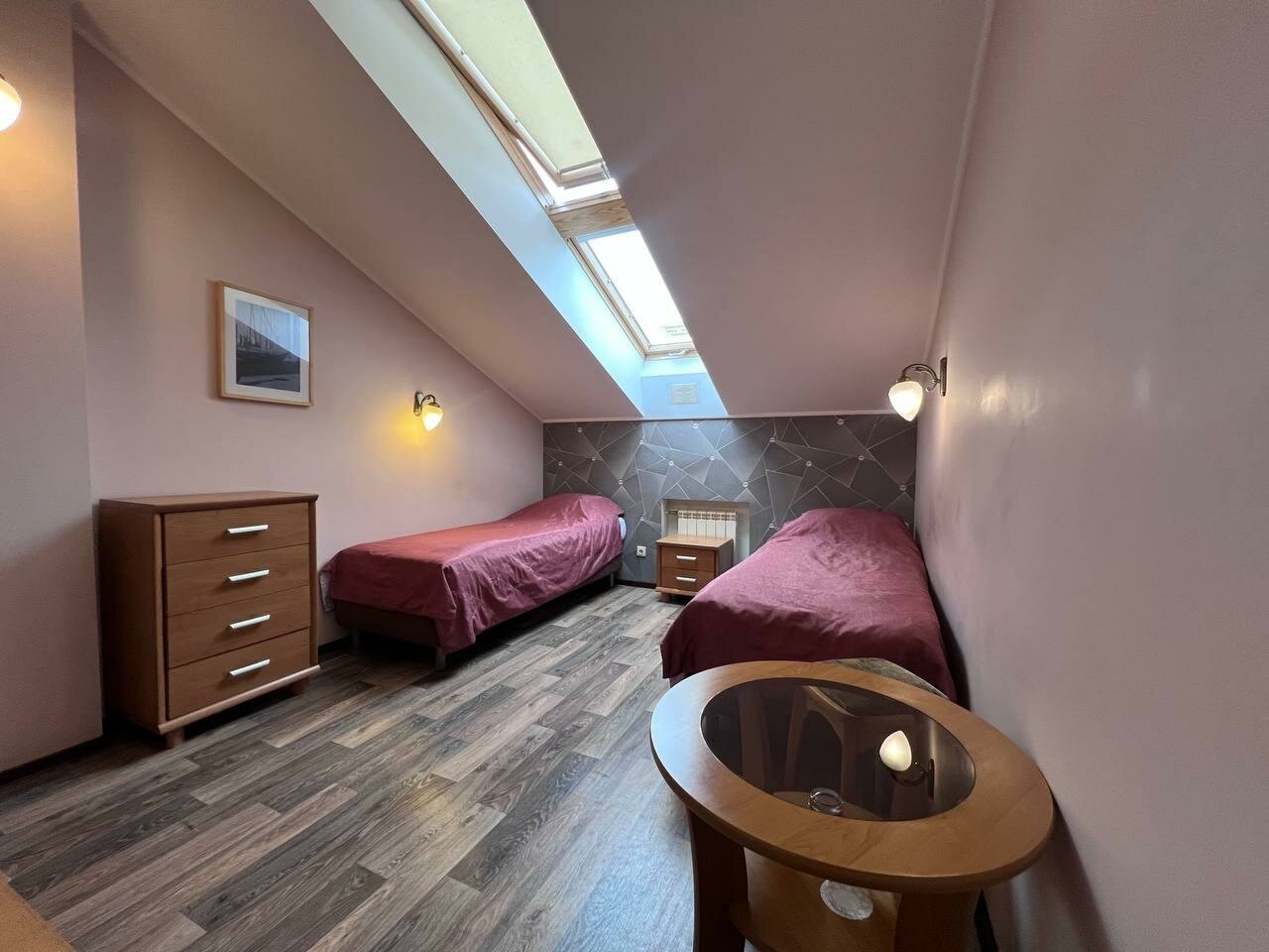 Площадь номера 20 кв.м на мансардном этаже гостиницы «Lagom»Уютный номер для отдыха со всеми удобствами.В номере имеются 2 односпальные кровати (при желании кровати можно сдвинуть или раздвинуть), прикроватные тумбы, диван, телевизор, free wi-fi
