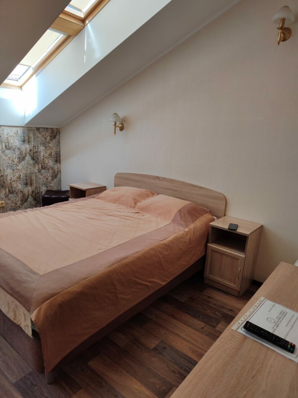 Площадь номера 20 кв.м на мансардном этаже гостиницы «Lagom»Уютный номер для отдыха со всеми удобствами.В номере имеются 1 двуспальная кровать, прикроватные тумбы, диван, телевизор, бесплатный WI-FI, письменный стол, 2 стула, холодильник, шкаф