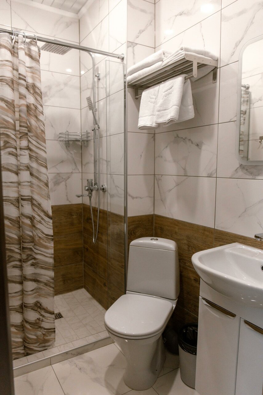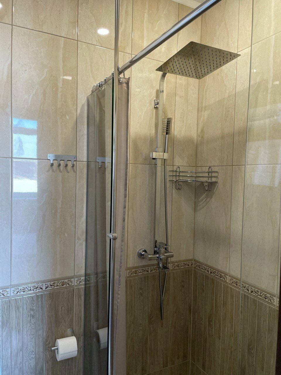 Просторный номер отлично подойдет для проживания до четырёх человек. Большая ванная комната с ванной и душевой кабиной.