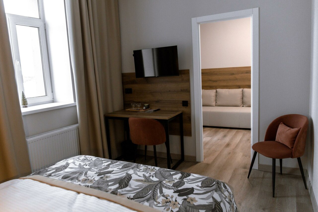 Просторный двухкомнатный номер с собственной мини-кухней.