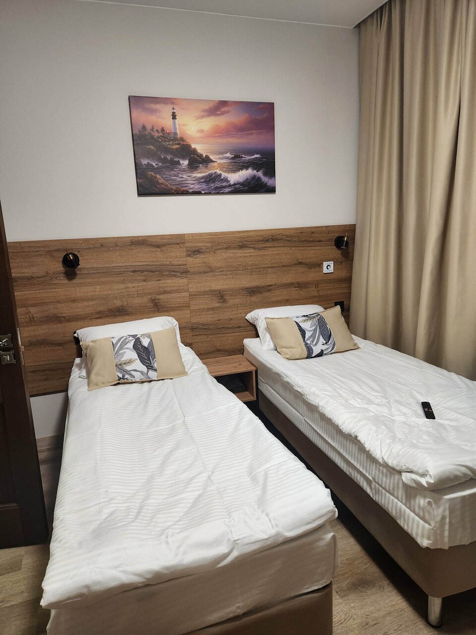 Совершенно новый отель. Все с иголочки. Удобные кровати, уютный интерьер. Новейшие простыни и полотенца. Очень доброжелательный персонал. Вид на залив и Выборгский замок впечатляет. Очень большая и удобная парковка. Сытный завтрак. Для путешественников на машине отличный вариант. Летом видимо будут ещё возможность выйти на лодке по заливу. Очень рекомендую.