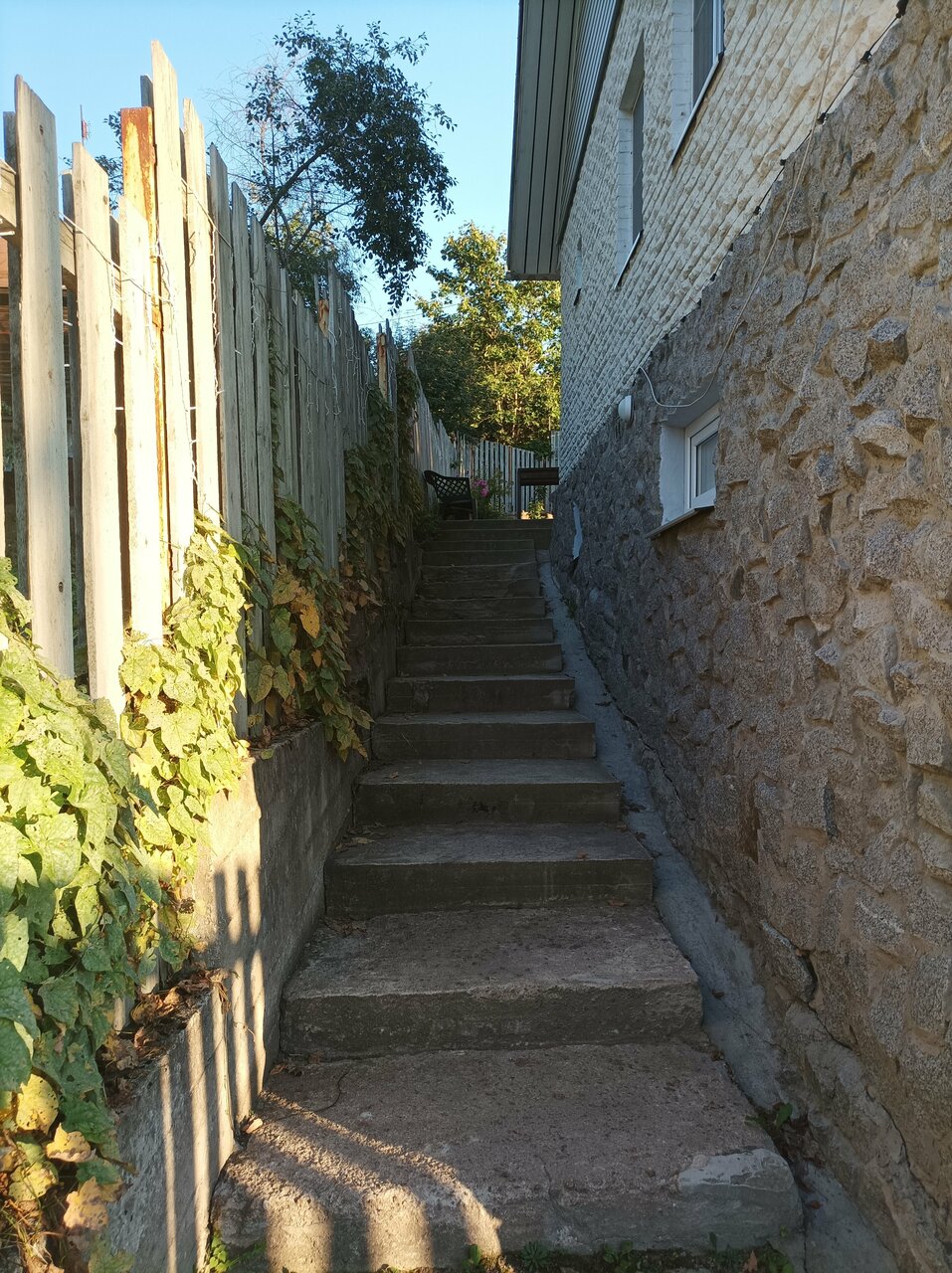 По сути двухэтажный особняк, разделенный на комнаты. У нас были двуспальные апартаменты на втором этаже. Это достаточно большая комната с зоной готовки. Есть индукционная поверхность, небольшой холодильник, посуда. В банках нашлись сахар, соль, иван-чай и овсяная каша(геркулес). Санузел совмещенный. Из плюсов: тихое место в пешей доступности от входа в парк Монрепо, удобная кровать, доброжелательный хозяин. Из минусов: в округе один более менее приличный магазин, либо на машине кататься в Выборг. Отдельной стоянки для машин нет, но можно парковаться на улице. И ещё у нас была небольшая проблема со сливом в душе. Пришлось его самому прочистить, потому что крышку в сливе перекосило, водный затвор не работал и пахло канализацией.
