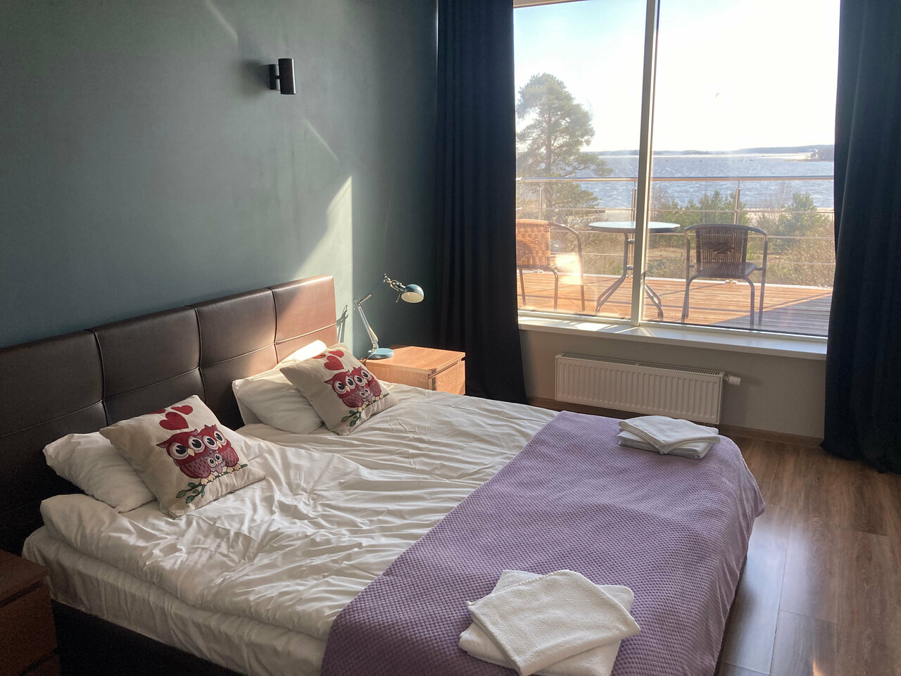 прекрасное место, природа вокруг живописнейшая, залив, валуны из гранита, лес с грибами и брусникой. комната была отличная с панорамным окном на залив, мечта! чисто, дизайн прекрасный, ванна большая и удобная. Завтраки великолепные, необычайно вкусные кофе и каша! до центра Выборга и Монрепо несколько минут на такси, очень удобно