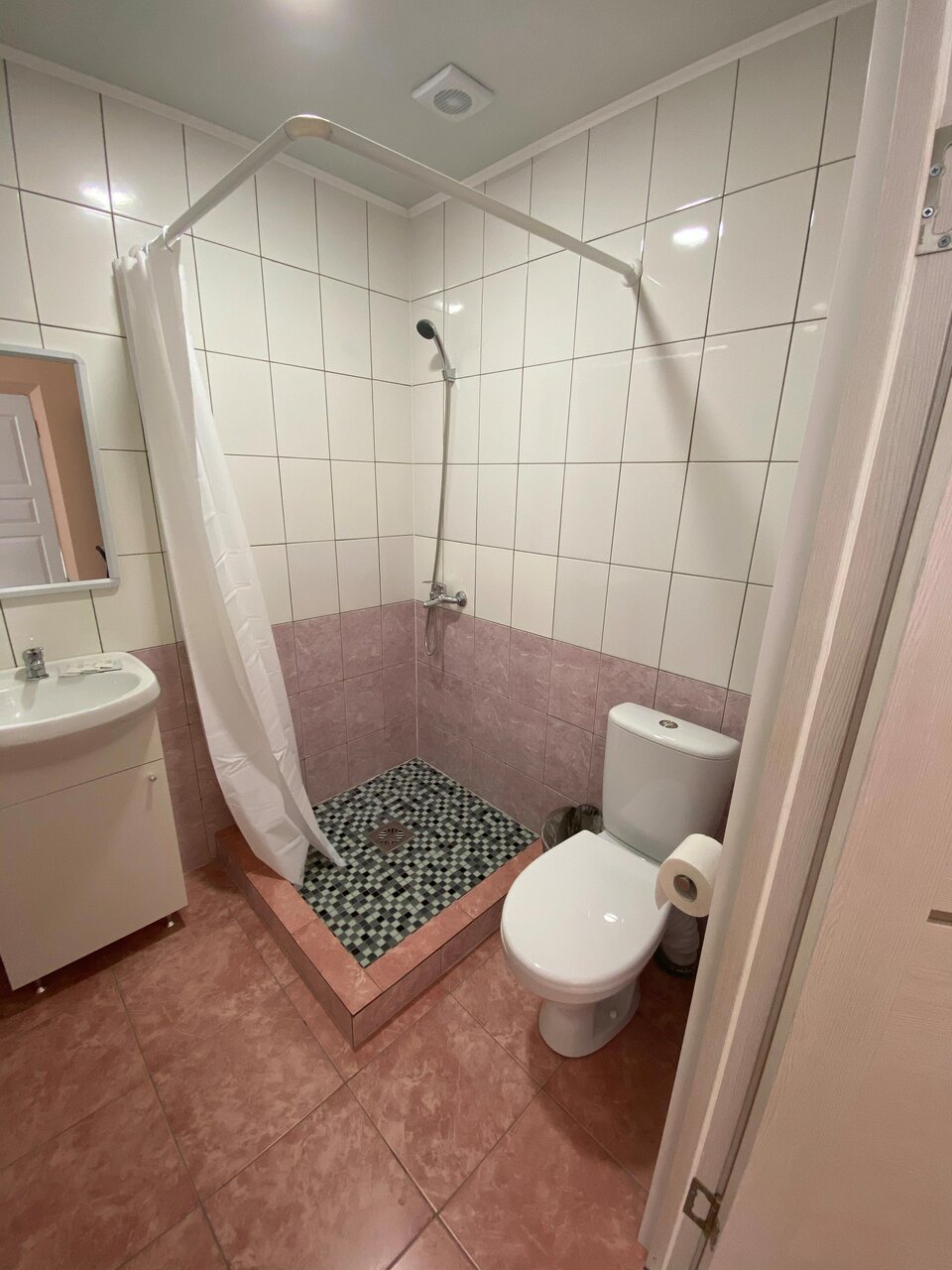 Очень удобное дистанционное заселение. Чистый номер. Удобные кровати и хорошие постельные принадлежности. Тапочки индивидуальные. Чай, бутылка воды. Единственный минус, скорее неудобство: санузел совмещённый с душем. Мало места, вода уходит медленно. И загадочная дверь(фото прилагается), напрягает, что нет возможности контролировать её закрытие. К тому же, она как будто прозрачная. Паранойя…